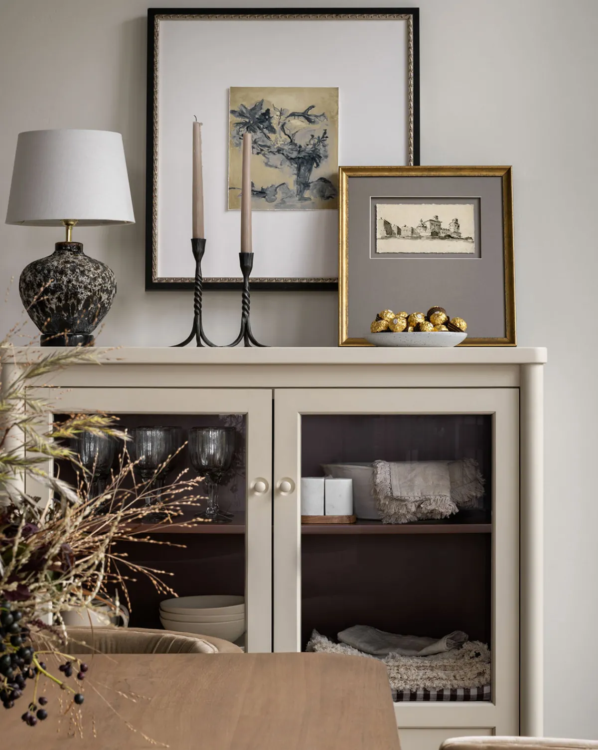Whimsical and unique, Abstracted Votives uses cool tones and simple botanical composition to create a romantic piece that brings beauty to your spaces. With a distressed black frame and gallery-quality materials, the still life elevates your styling.