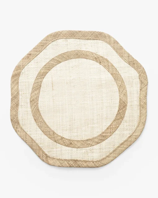 Woven from bleached raffia, the Amberly Woven Placemat adds texture and charm to your table. Showcasing an applique border edge, this placemat offers a modern take on a classic design.