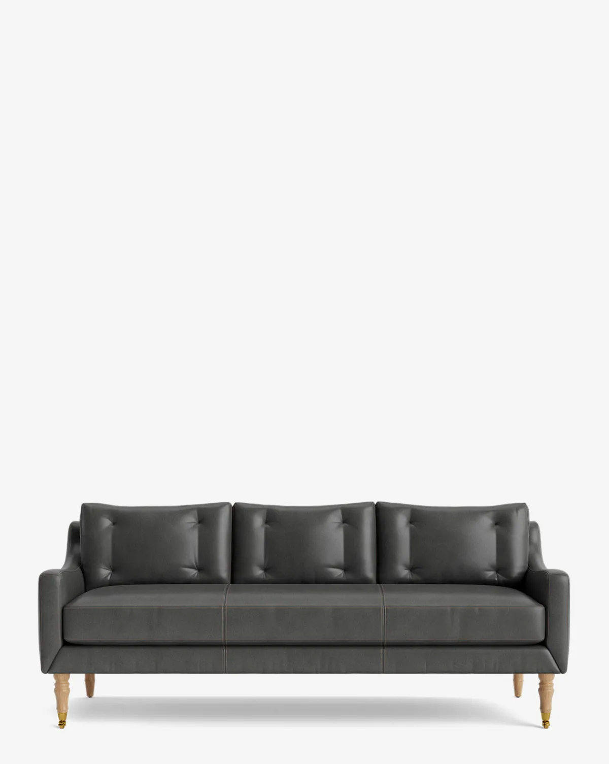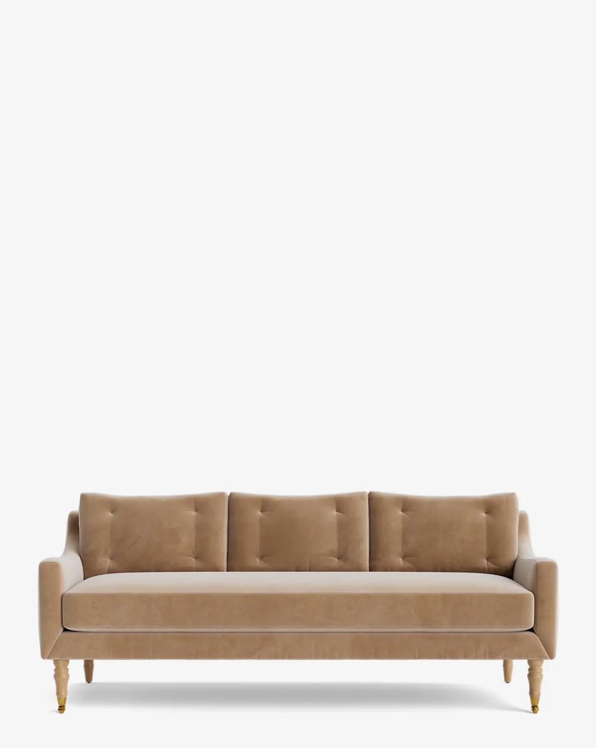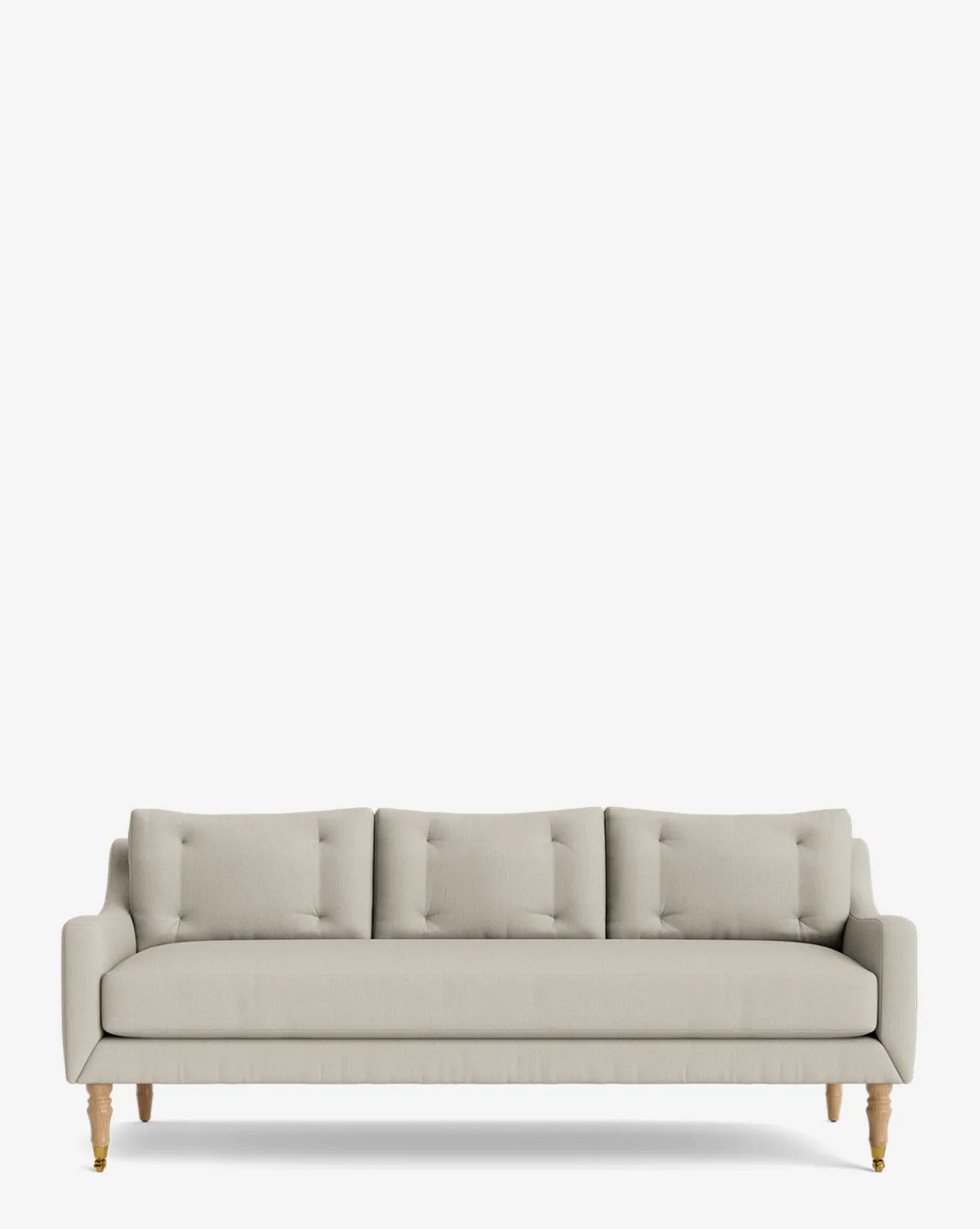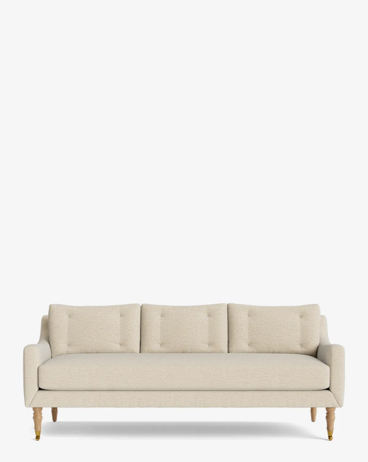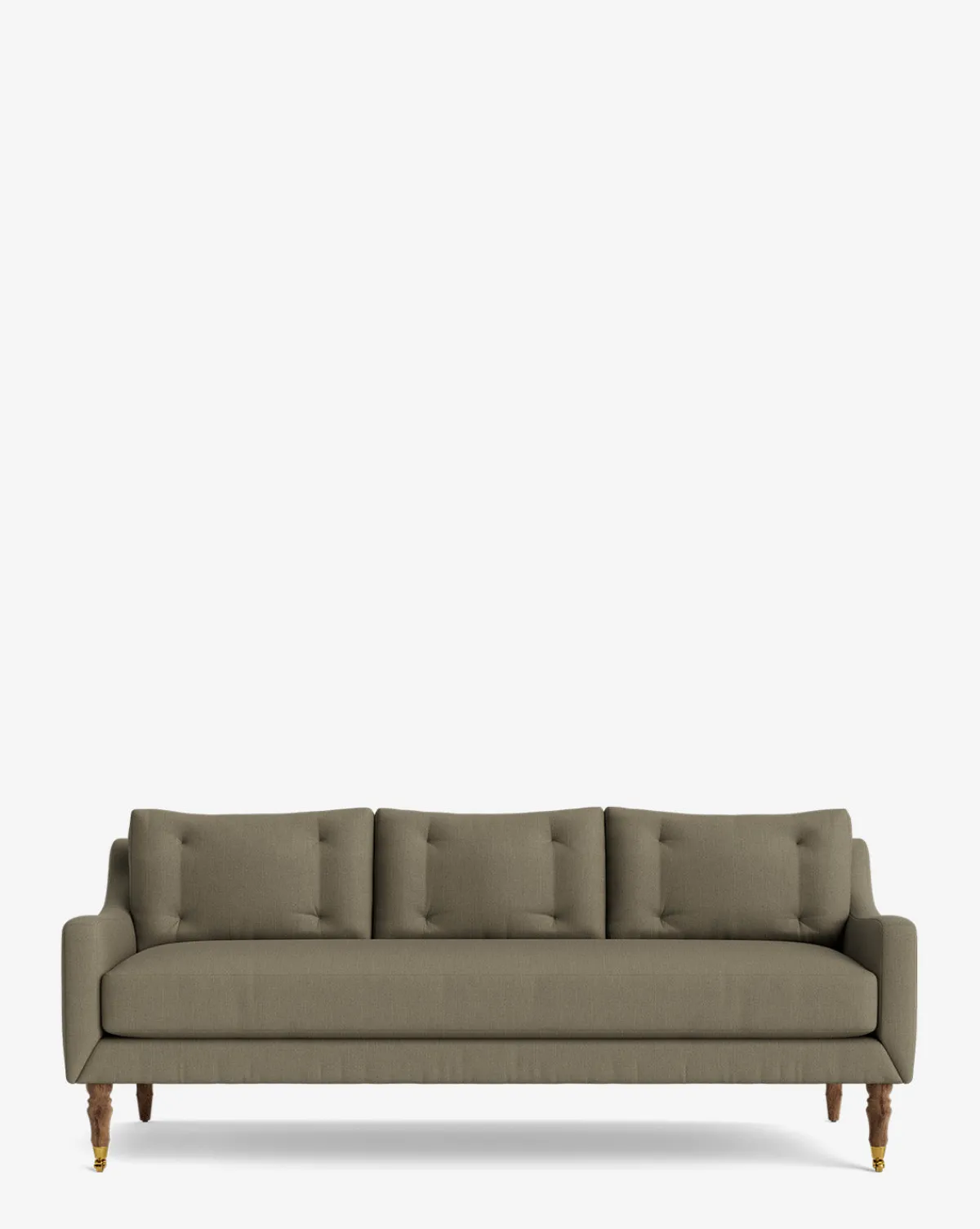 With tufted cushions and decorative legs, the Barden Sofa 84″ gives a modern update to traditional elements. Its reeded wood legs give nod to turn of the century style and are fitted with brass caps, while its single upholstered cushion gives a refreshingly minimal tone to the piece. Beautiful in form while functionally comfortable, the Barden Sofa 84″ comes in a variety of colorways.