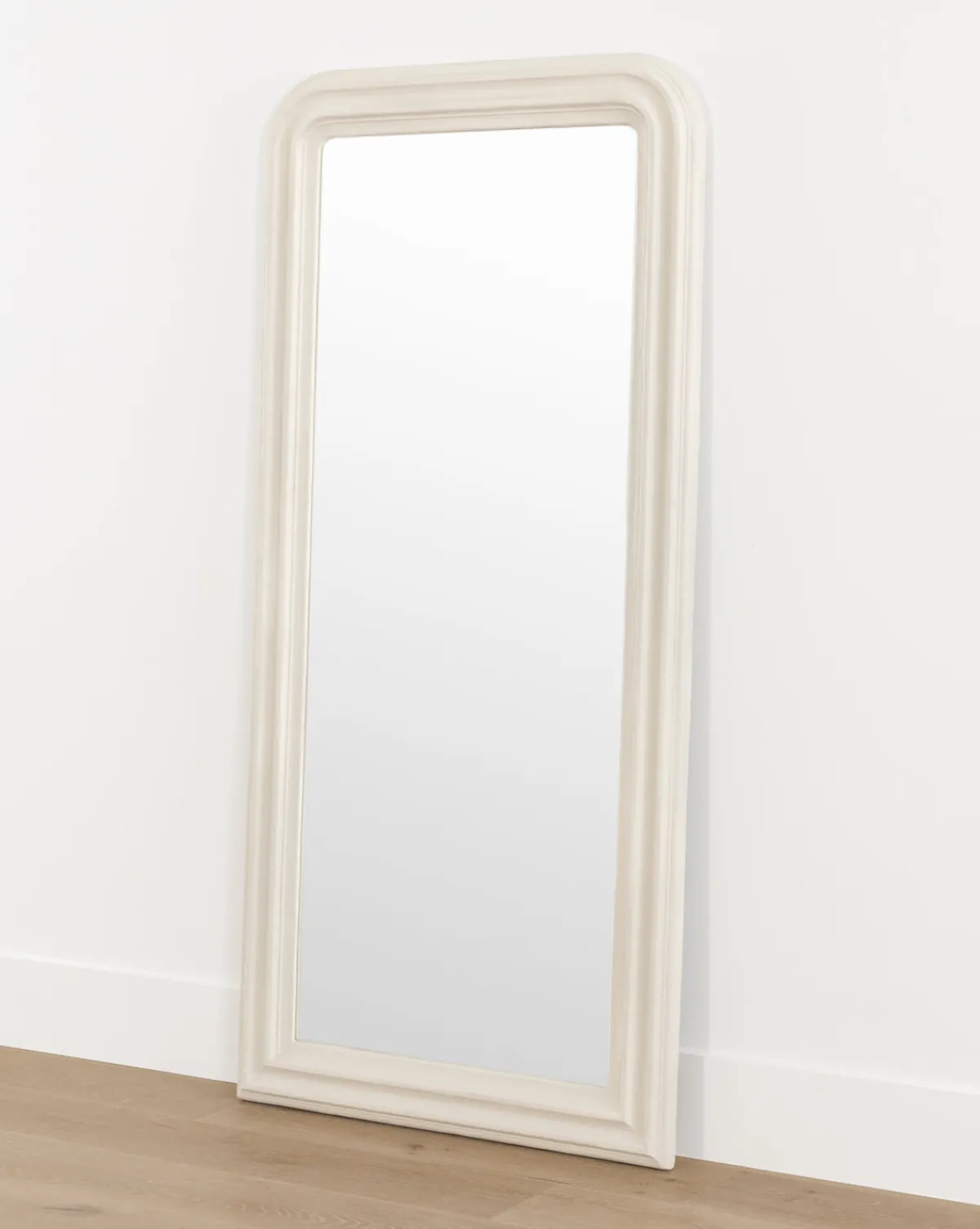 Our Breslin Floor Mirror has a bold yet versatile frame with moulding to create its distinct look. With a warm plaster finish, this floor mirror elevates your spaces, from bedrooms to entryways.