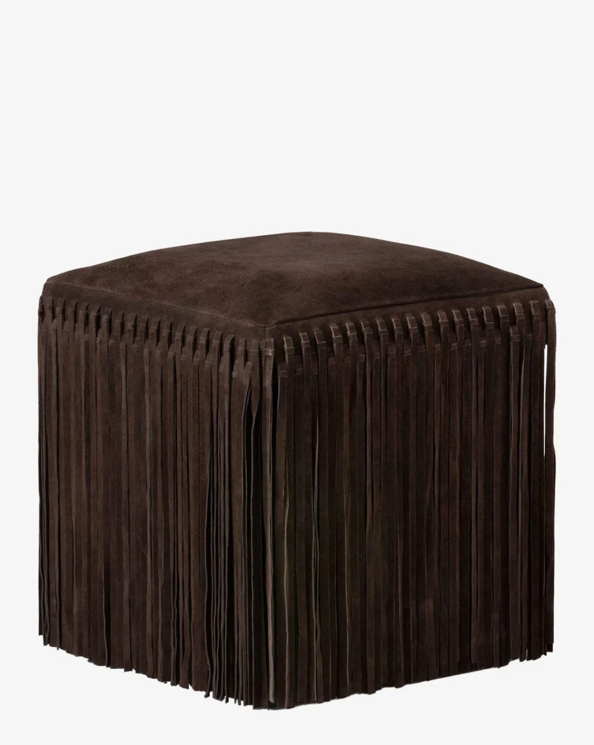 With playful tassels, the Damian Ottoman lends texture and visual interest to your space. Refined in style, this ottoman is made from suede in a camel hue.