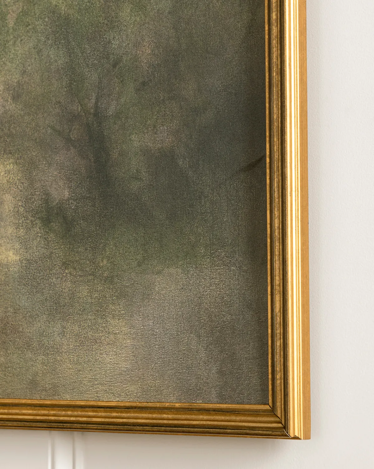 A dramatic landscape comes to life with each detail in Dream State. A museum-quality piece presented on canvas within a black and gold frame, the expressive artwork tells a story wherever the piece rests.