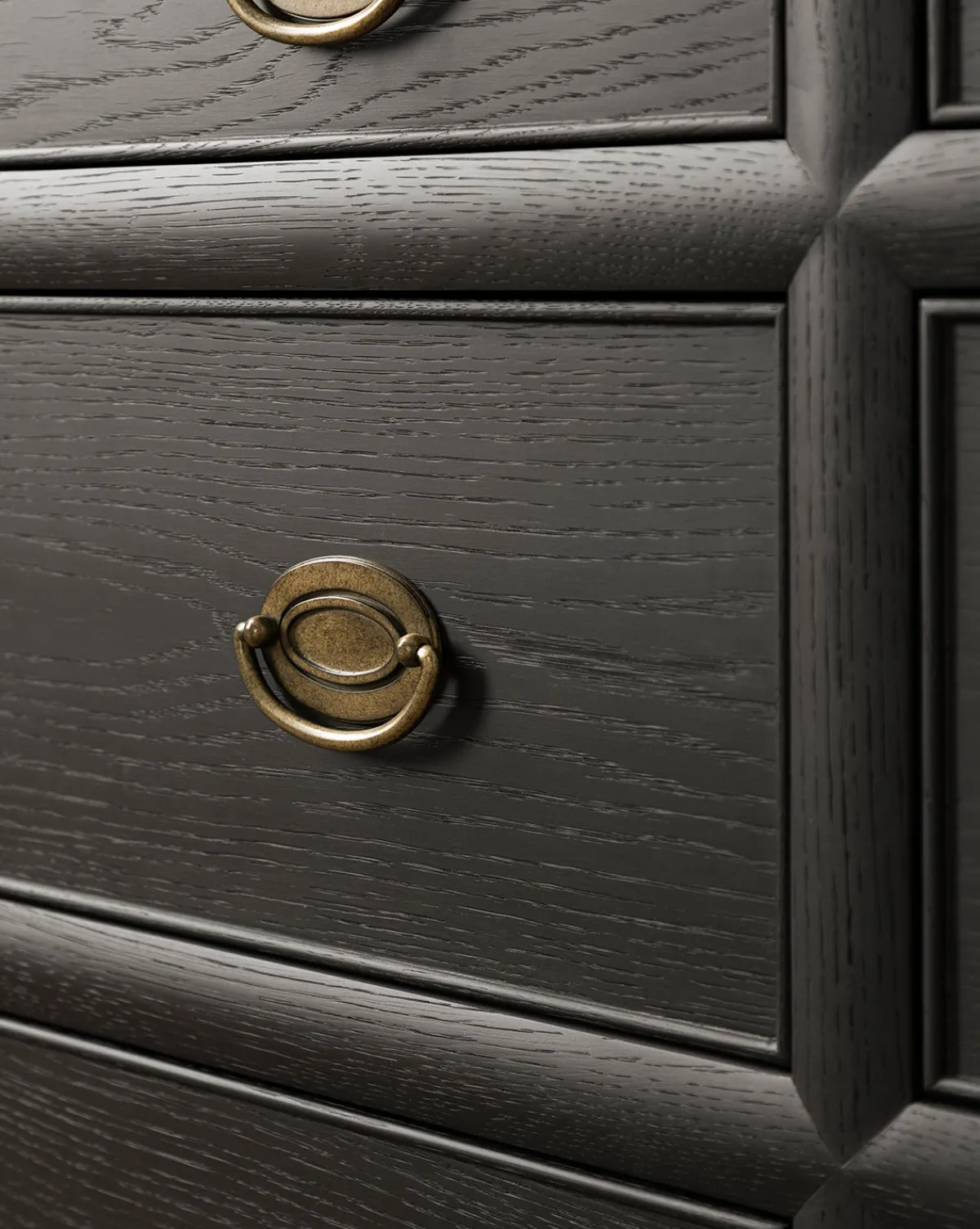 - Finish: Black Ash, Aged Brass Hardware
