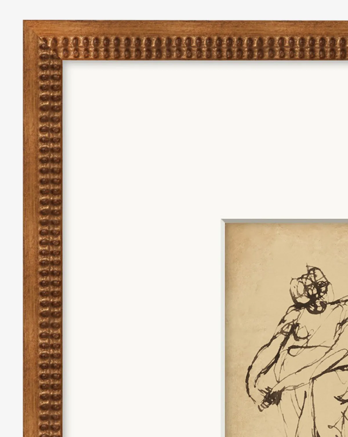 Displaying art in progress, Entwined evokes emotion through its clever use of negative space. Fitted with a single mat, and warm toned wood frame, this piece blends seamlessly with your existing decor, whether it’s styled as part of a gallery wall, or layered on your mantel.