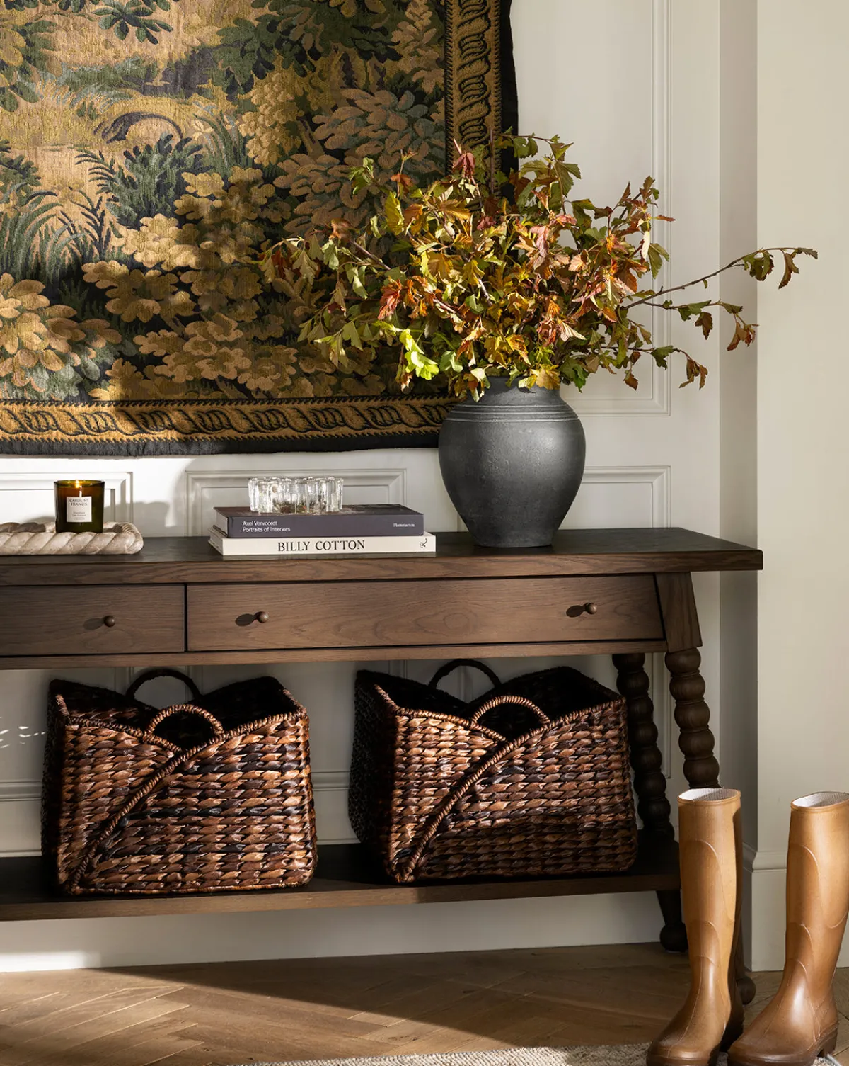 The Ethel Vase has a vintage-inspired, rustic feel that highlights its craftsmanship and material. Made from washed black terracotta, the vase elevates your decorative vignettes throughout the home.