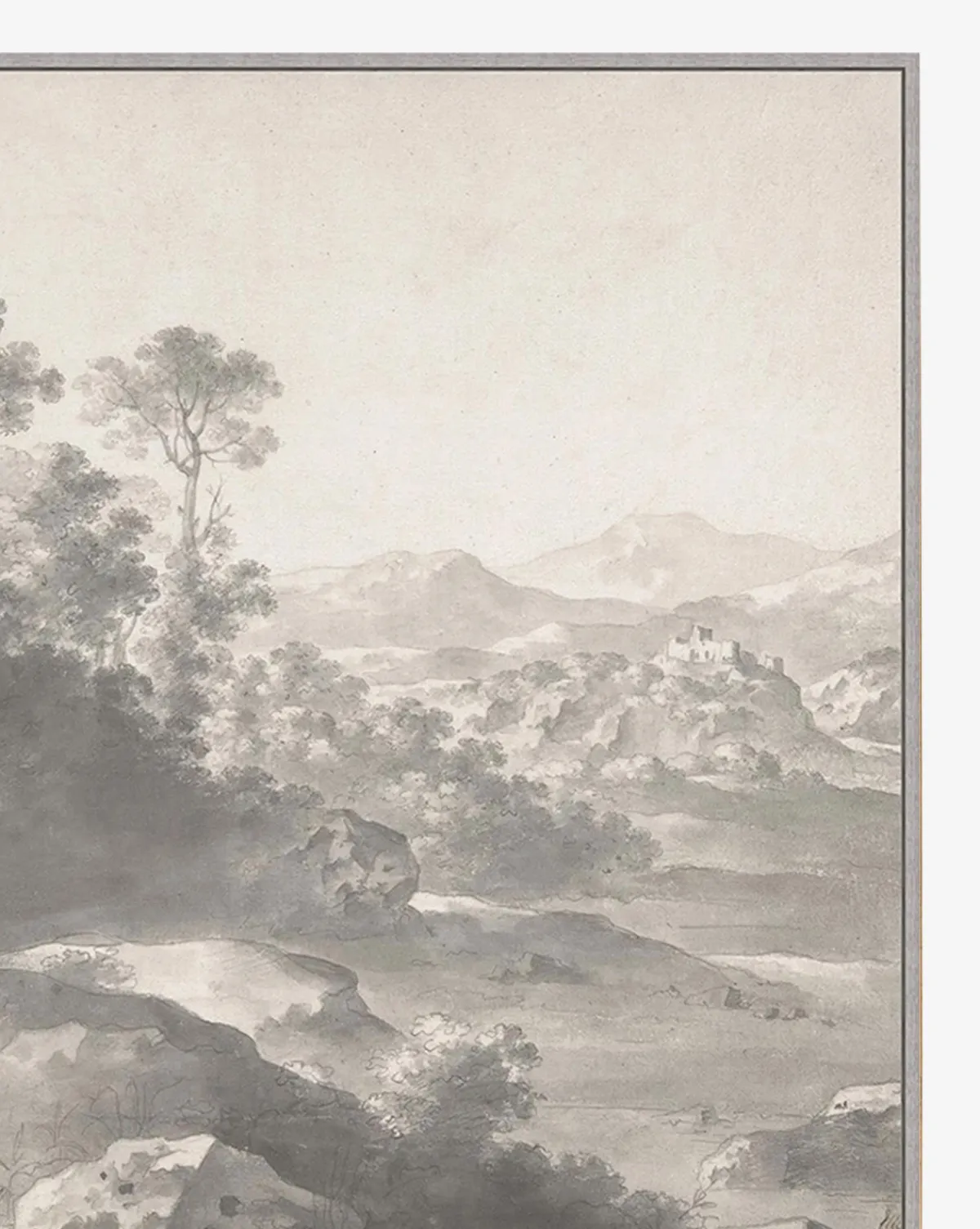 Serene and expressive, Ethereal View captures the quiet beauty of nature. Rendered in soft gray tones, this landscape composition offers depth and timeless refinement. Printed as a giclee on raw canvas, this piece is gallery-wrapped and set in a frame finished with gray driftwood.
