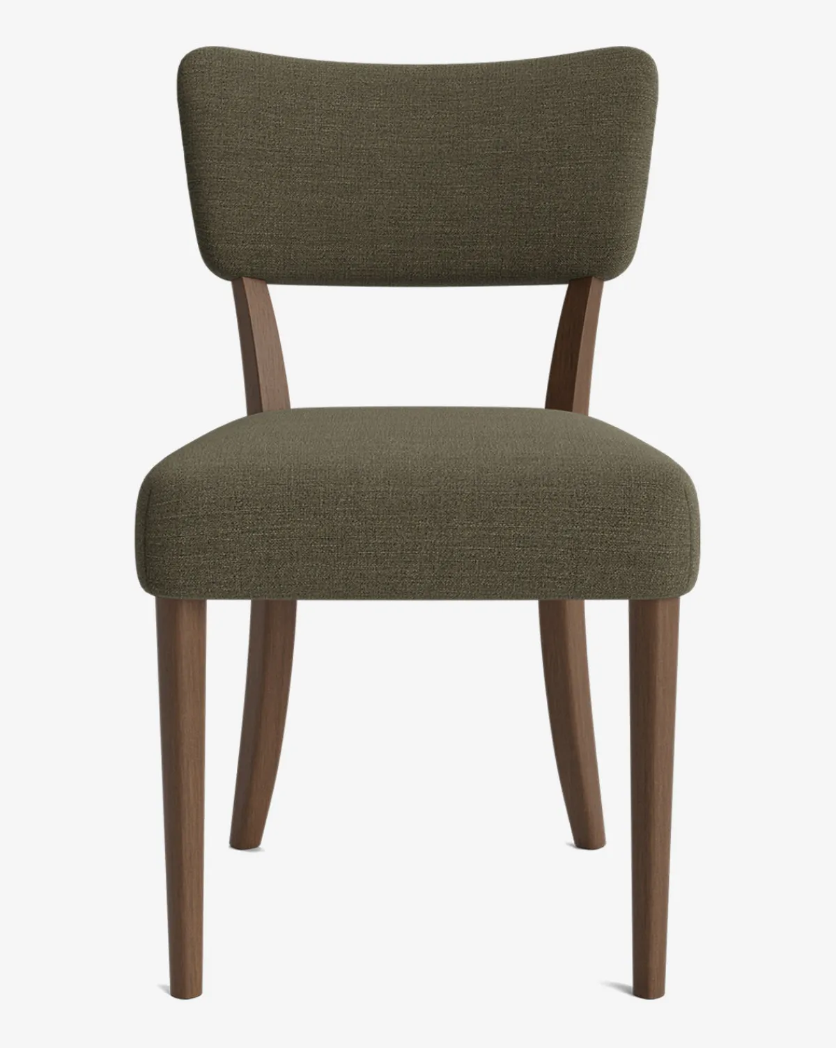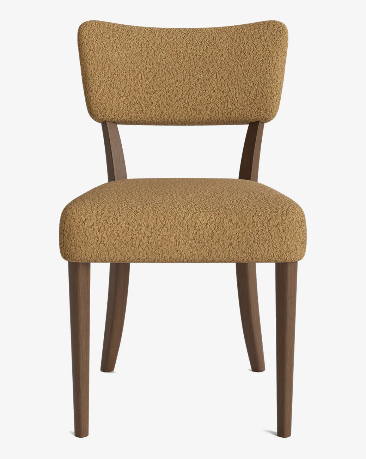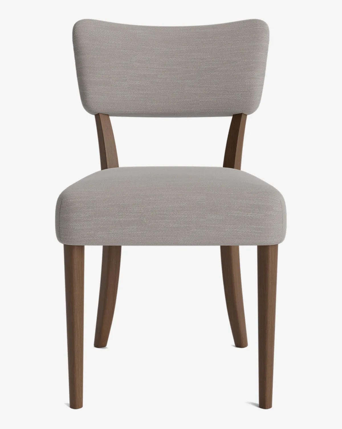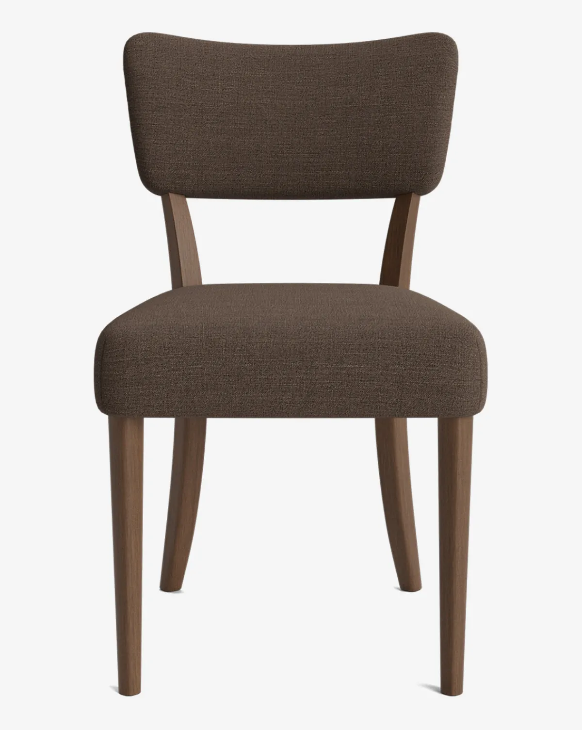 Vintage inspired and artfully designed, our Etienne Dining Chair is a timeless staple for your dining room styling. With a classic form, the chair features tapered square legs and a soft curve on the top and bottom edge of the back. The chestnut wood finish offers a rich warmth and the plush seat cushion caters to comfort. Customizable in a wide array of fabrics, you can make this made-to-order piece entirely your own.