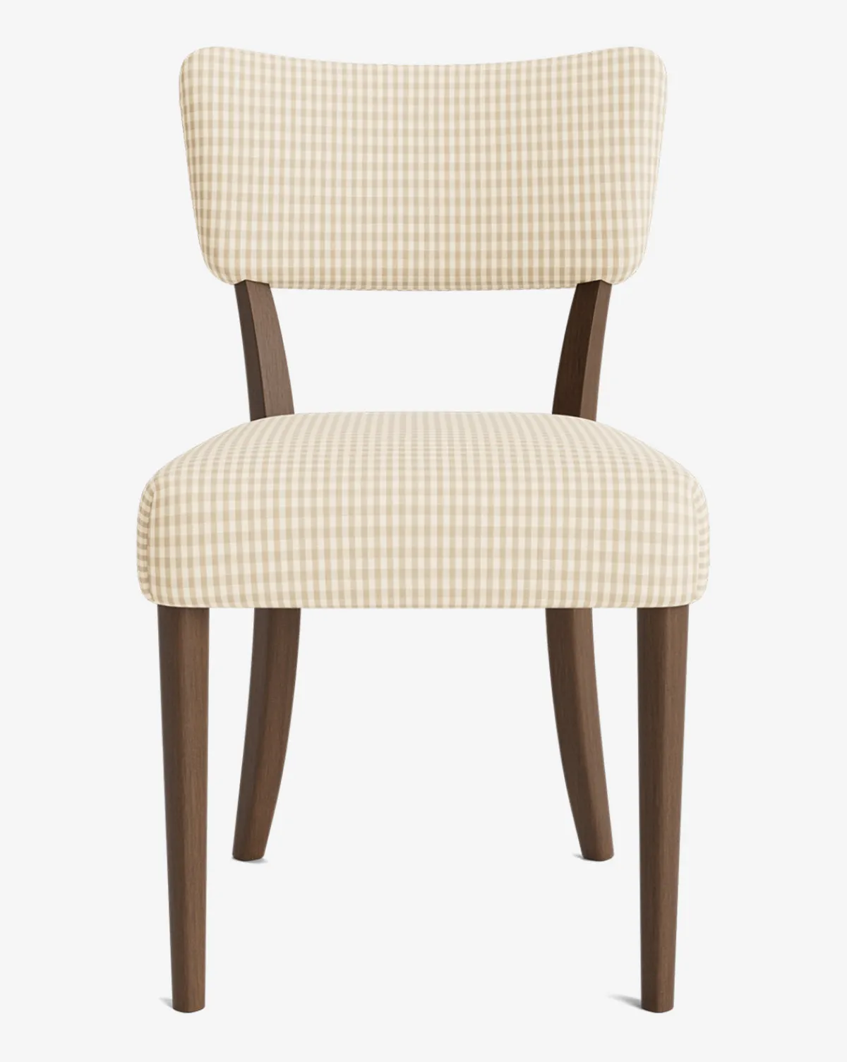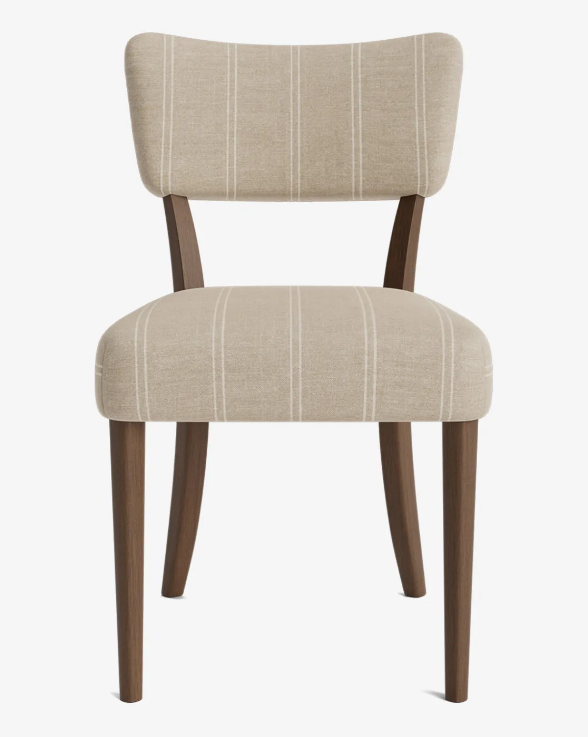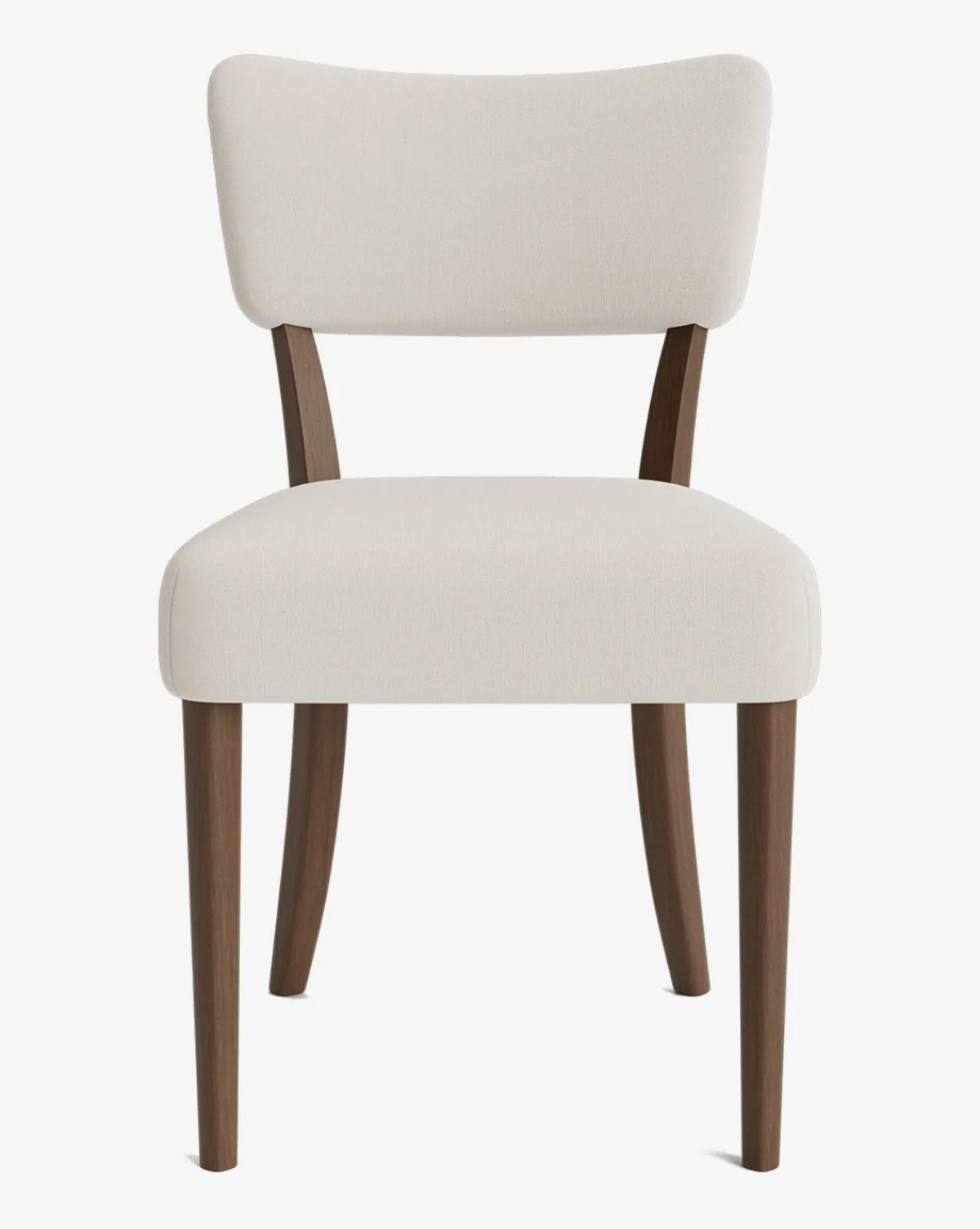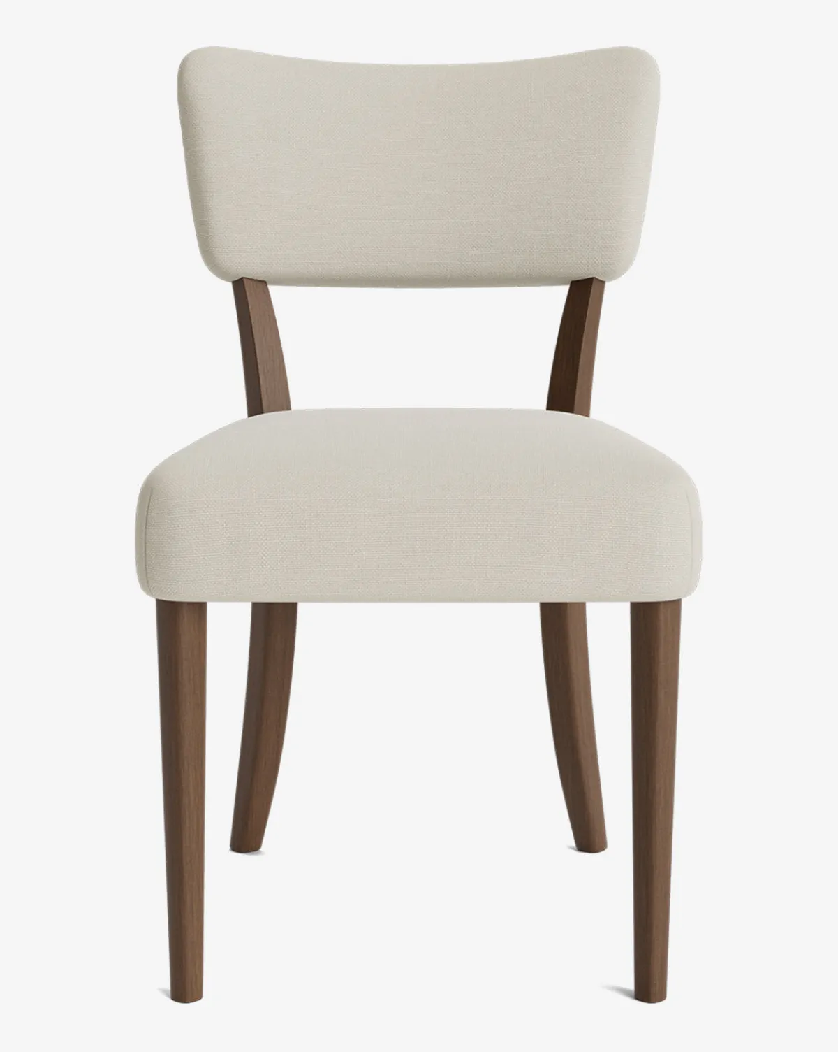 Vintage inspired and artfully designed, our Etienne Dining Chair is a timeless staple for your dining room styling. With a classic form, the chair features tapered square legs and a soft curve on the top and bottom edge of the back. The chestnut wood finish offers a rich warmth and the plush seat cushion caters to comfort. Customizable in a wide array of fabrics, you can make this made-to-order piece entirely your own.