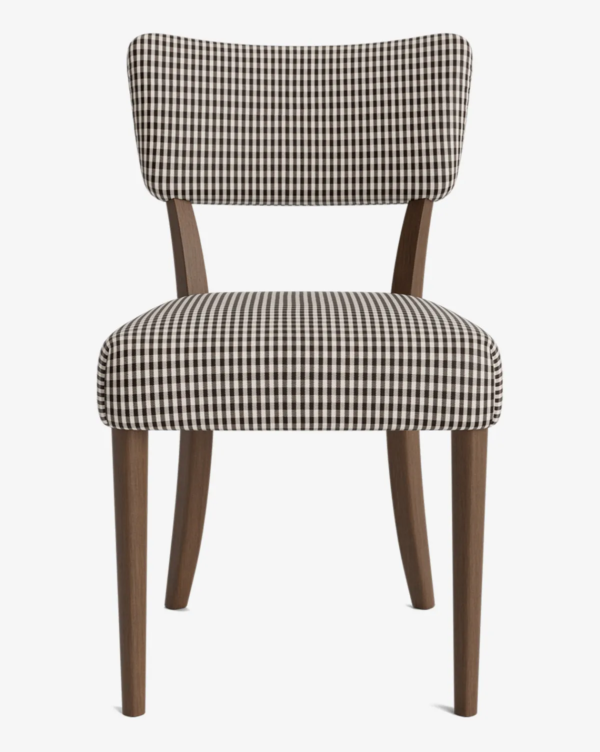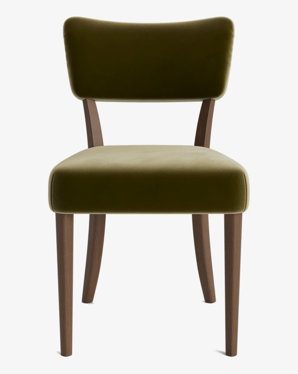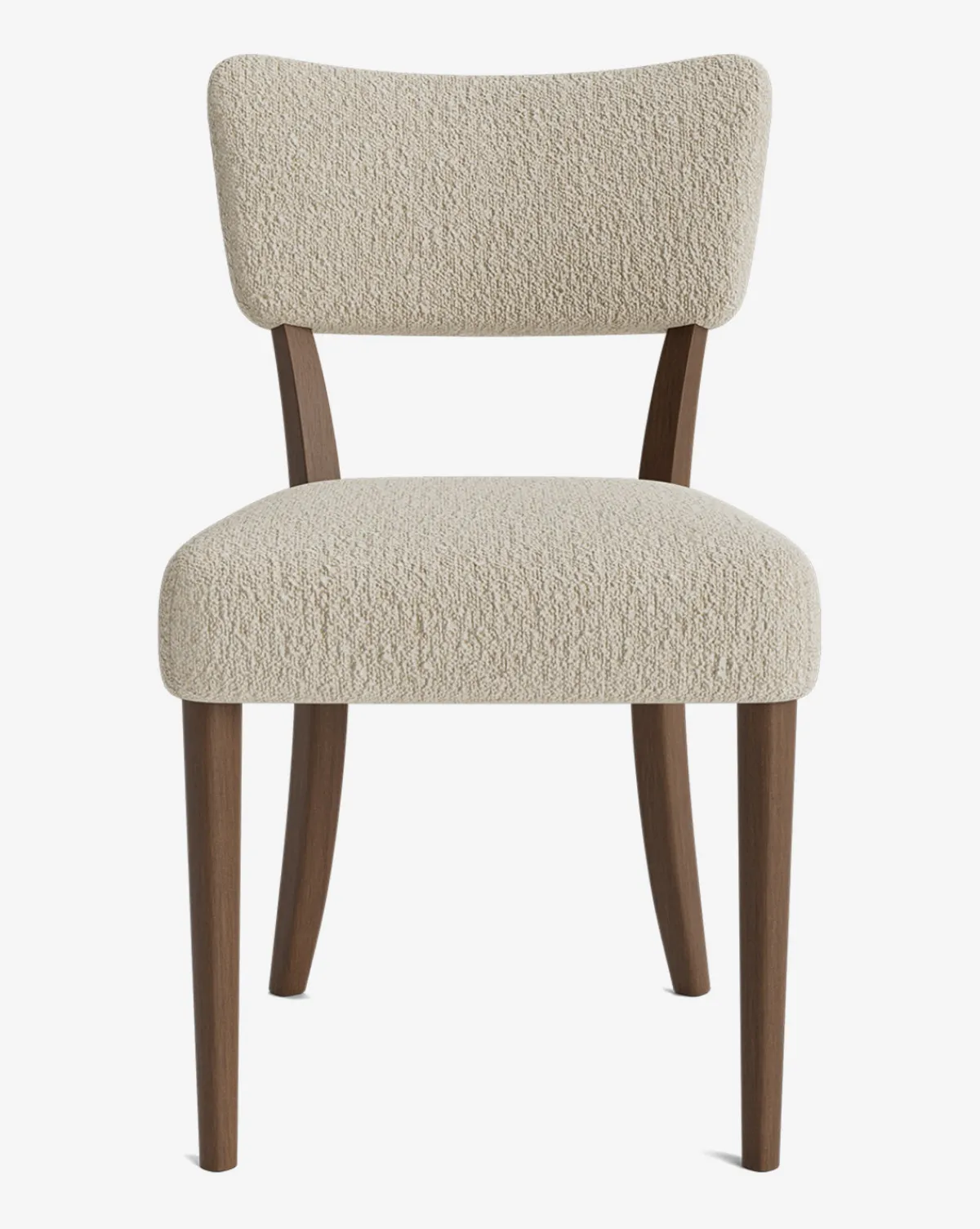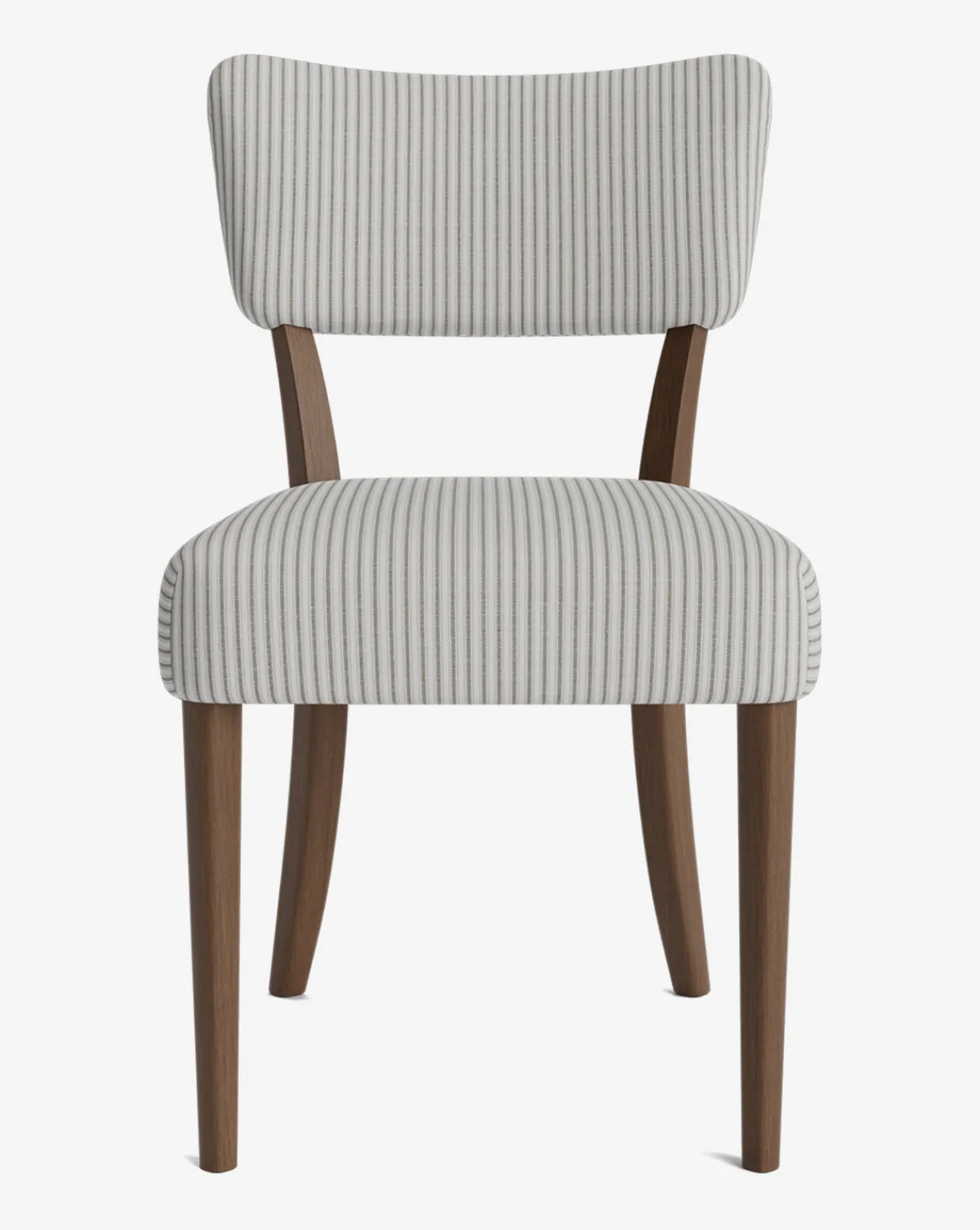 Vintage inspired and artfully designed, our Etienne Dining Chair is a timeless staple for your dining room styling. With a classic form, the chair features tapered square legs and a soft curve on the top and bottom edge of the back. The chestnut wood finish offers a rich warmth and the plush seat cushion caters to comfort. Customizable in a wide array of fabrics, you can make this made-to-order piece entirely your own.