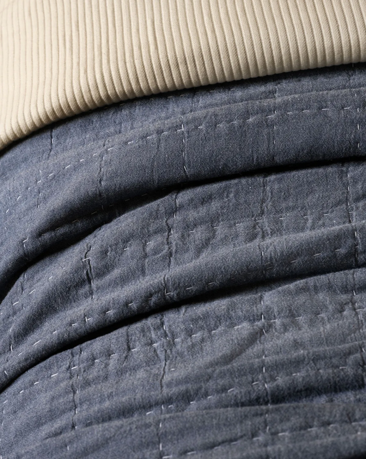 With a classic gingham pattern, the Fitzgerald Twin Kids Quilt is a simple piece that layers both character and texture into bedding. Made with a hand box quilting technique with stitching thread, the cotton quilt is a perfect detail for a children’s bed.
