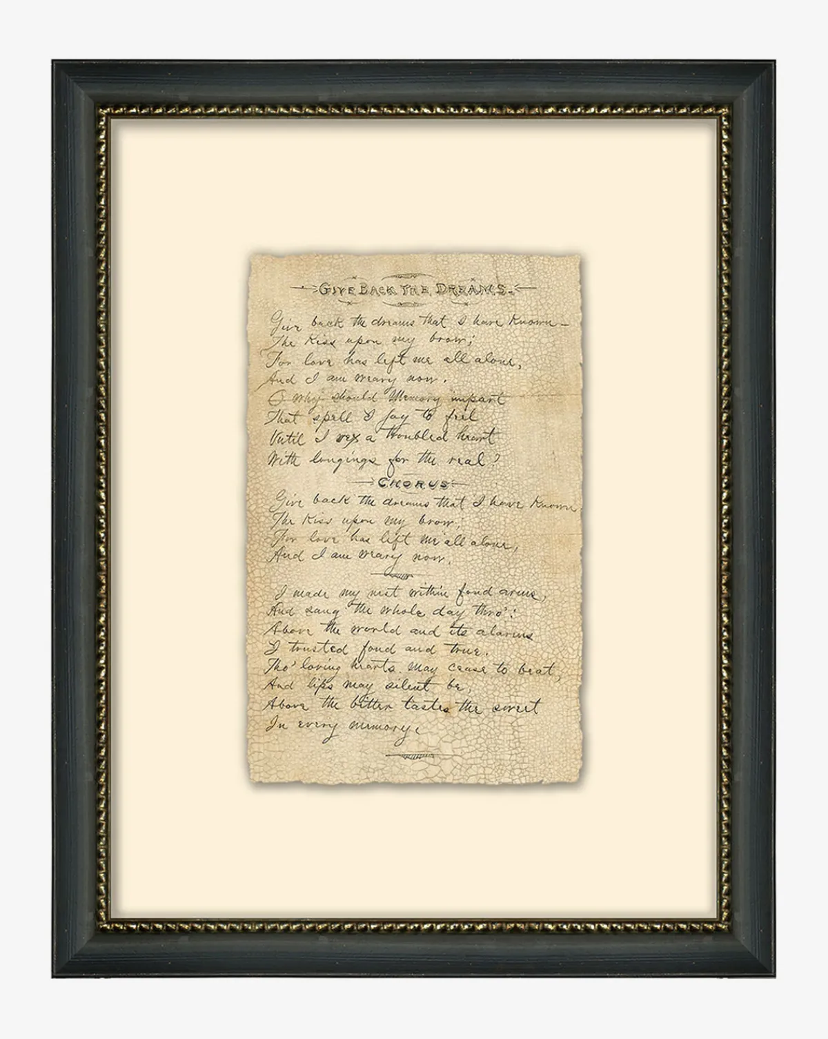 - Frame: Distressed Black & Antique Gold Finished Wood
