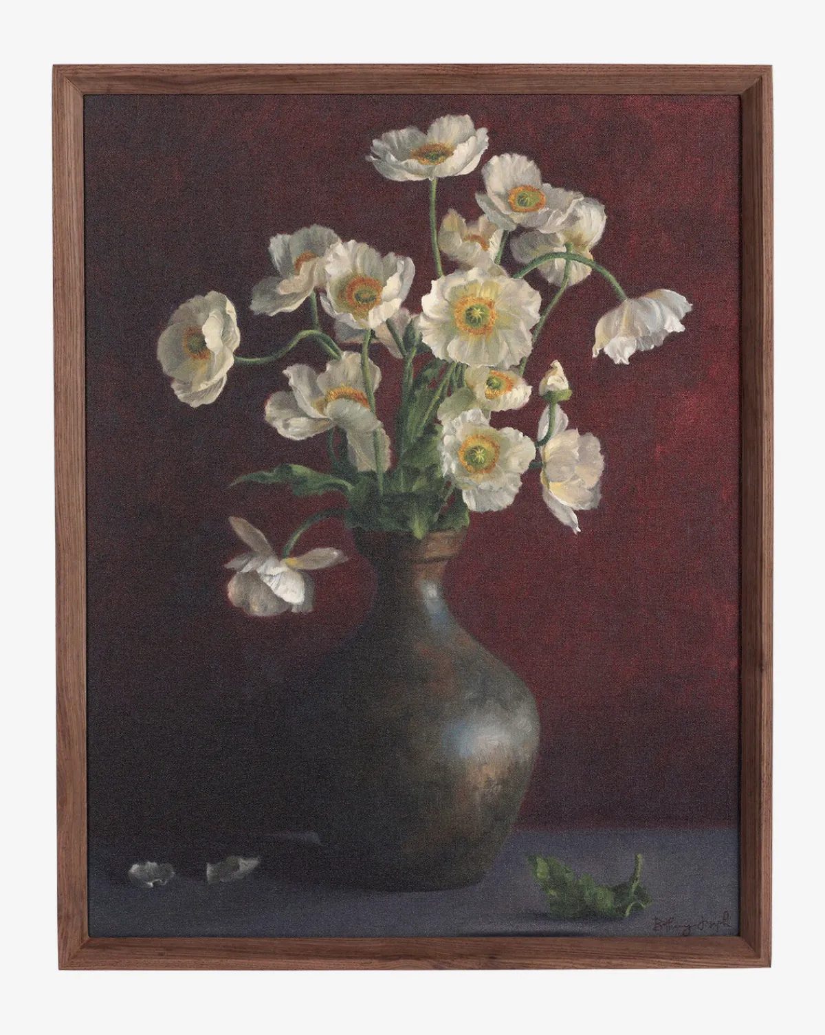 Elegant and timeless, Jubilee captures the quiet beauty of white blooms against a rich, moody backdrop. Artist Bethany Joseph layers and textures each oil piece on linen to highlight simple forms with remarkable depth. Handmade in Austin, TX, this still life invites a sense of refined calm to your home.