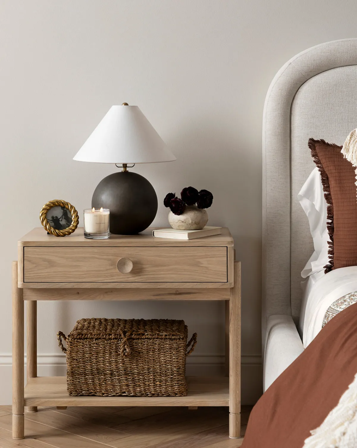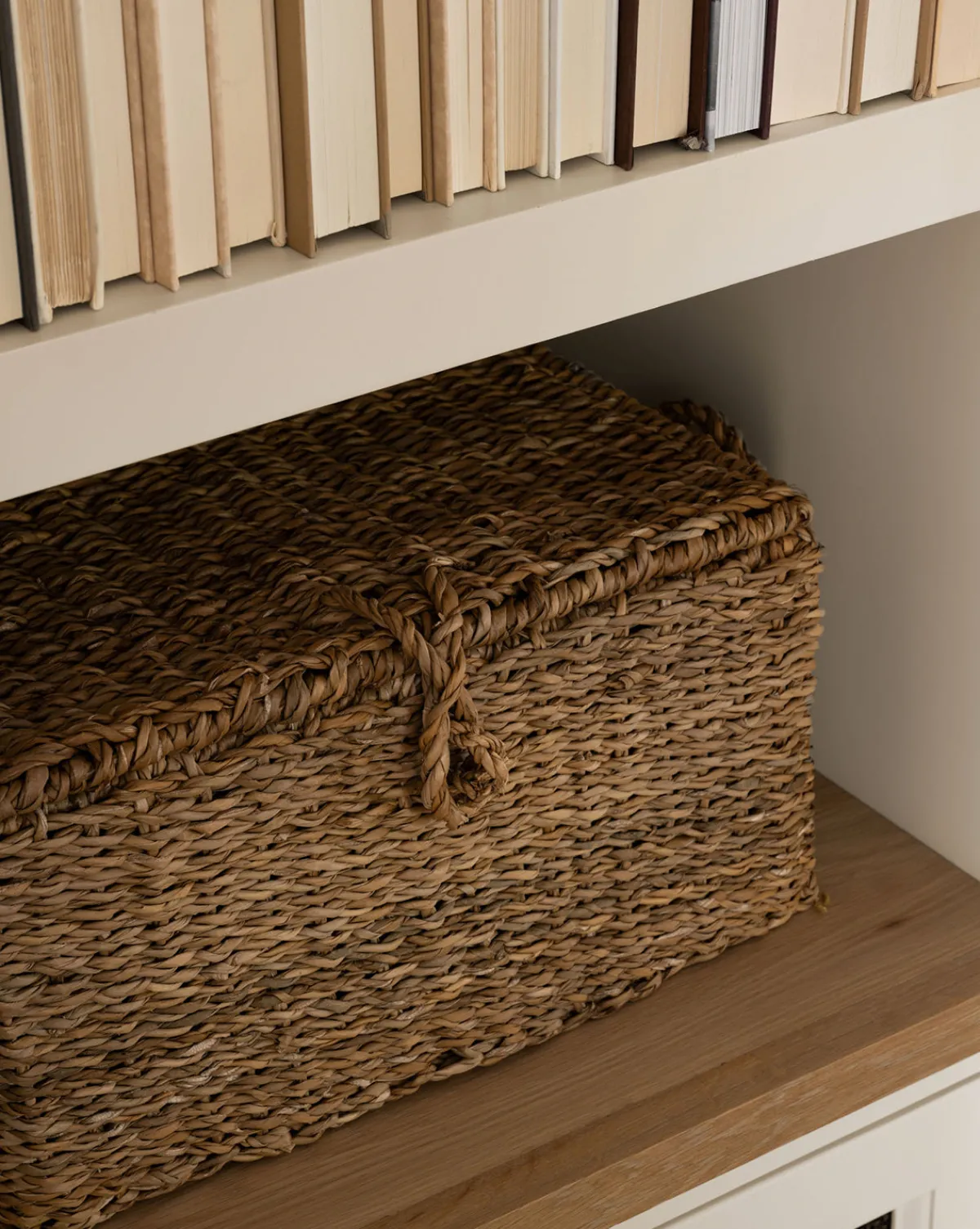 Made from hand-woven seagrass within a simple frame, the Kya Seagrass Boxes boasts rustic detail. With a woven clasp and woven handles, the decorative boxes delicately contribute an organic feel to a shelf or console vignette.
