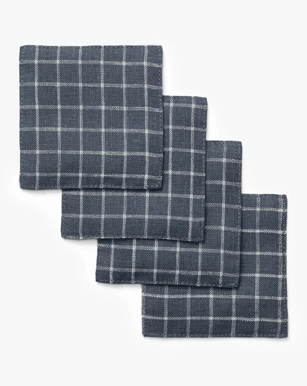 Protect your surfaces in style with the Lancaster Linen Coaster set. Featuring a classic navy and white check pattern, this set of four coasters is crafted with ultra-absorbent and quick-drying double-layered linen fabric that is sewn together for a look of refinement.