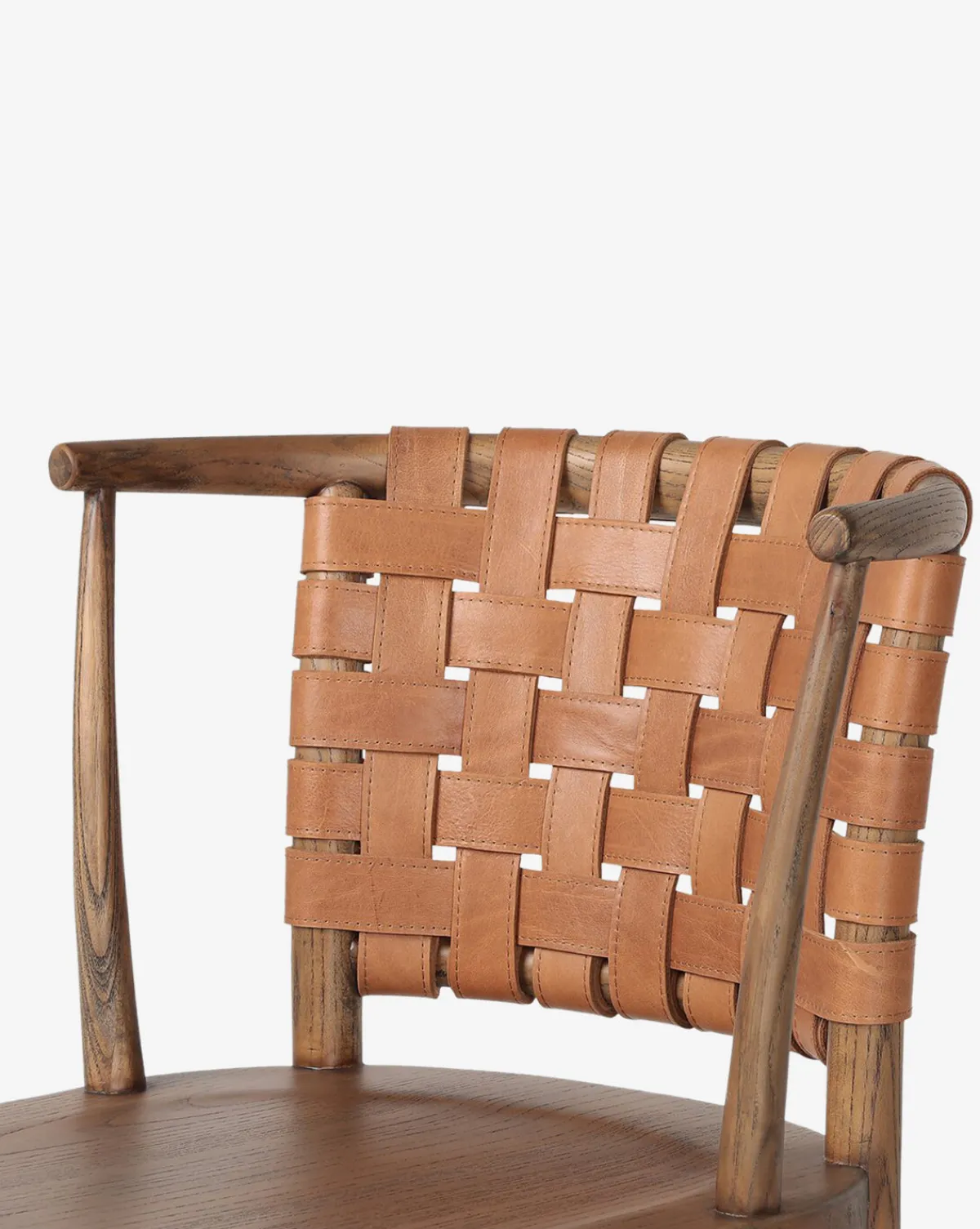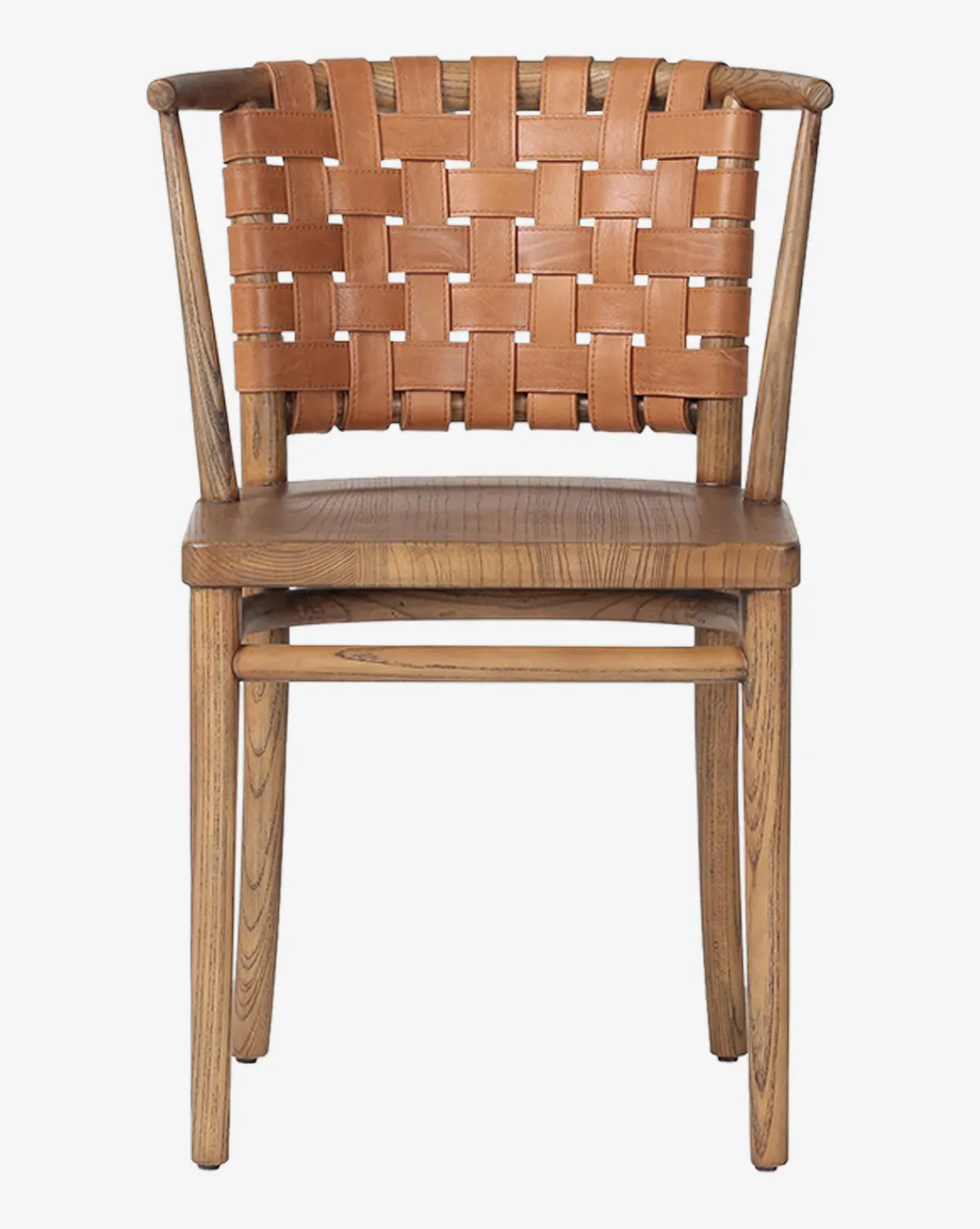 Featuring an inviting woven leather back and rich toasted nettle wood frame, the Lennon Dining Chair reimagines the classic bistro-style dining chair. Its compact form fits effortlessly into smaller seating areas, and its warm sophistication elevates any dining space.