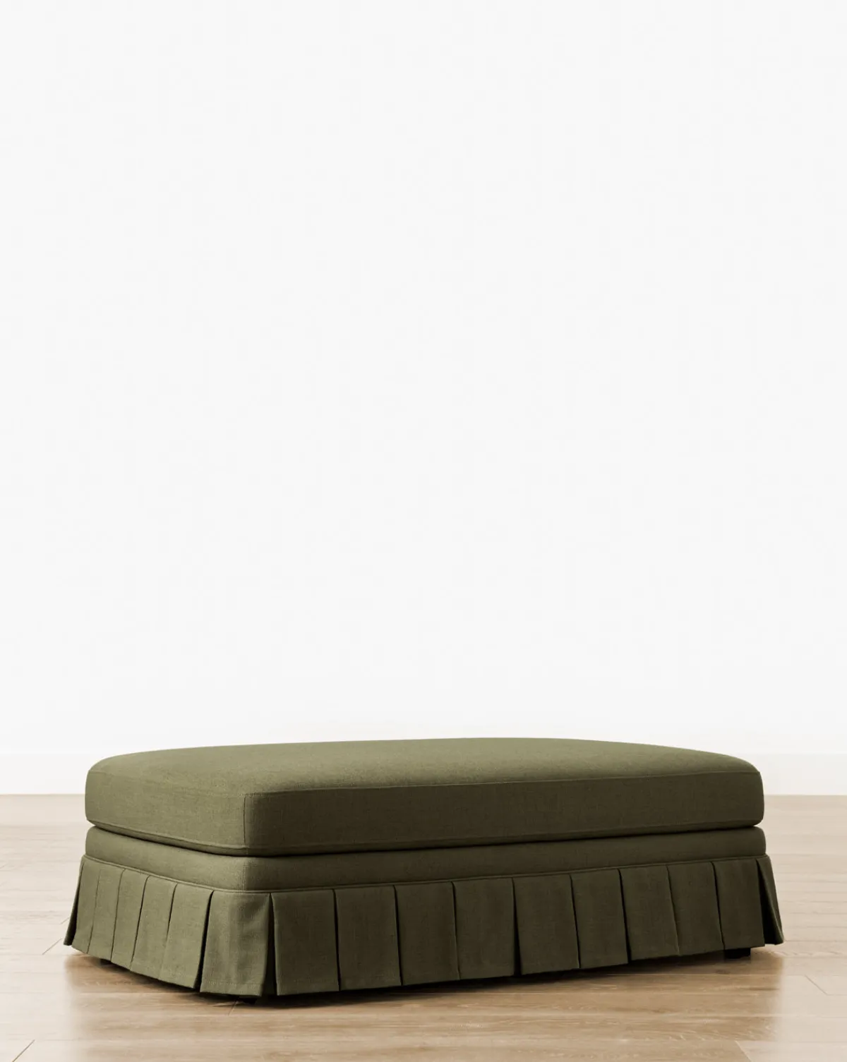Traditional elegance meets elevated comfort. Our Louisa Ottoman exudes sophisticated style with a classic silhouette and a box pleat skirt, while its generous size and cushioned seat offer an inviting sit. As part of our made-to-order Custom Upholstery Collection, the ottoman is available in your choice of high-quality fabrics.