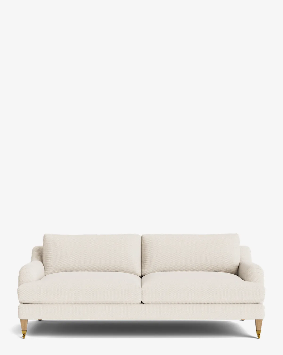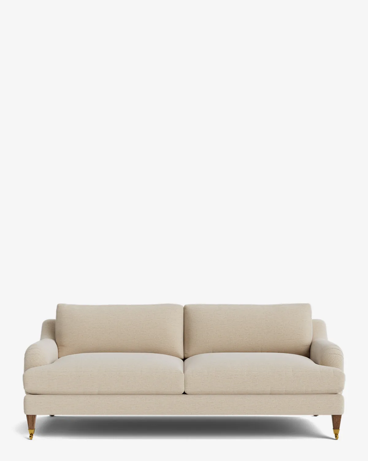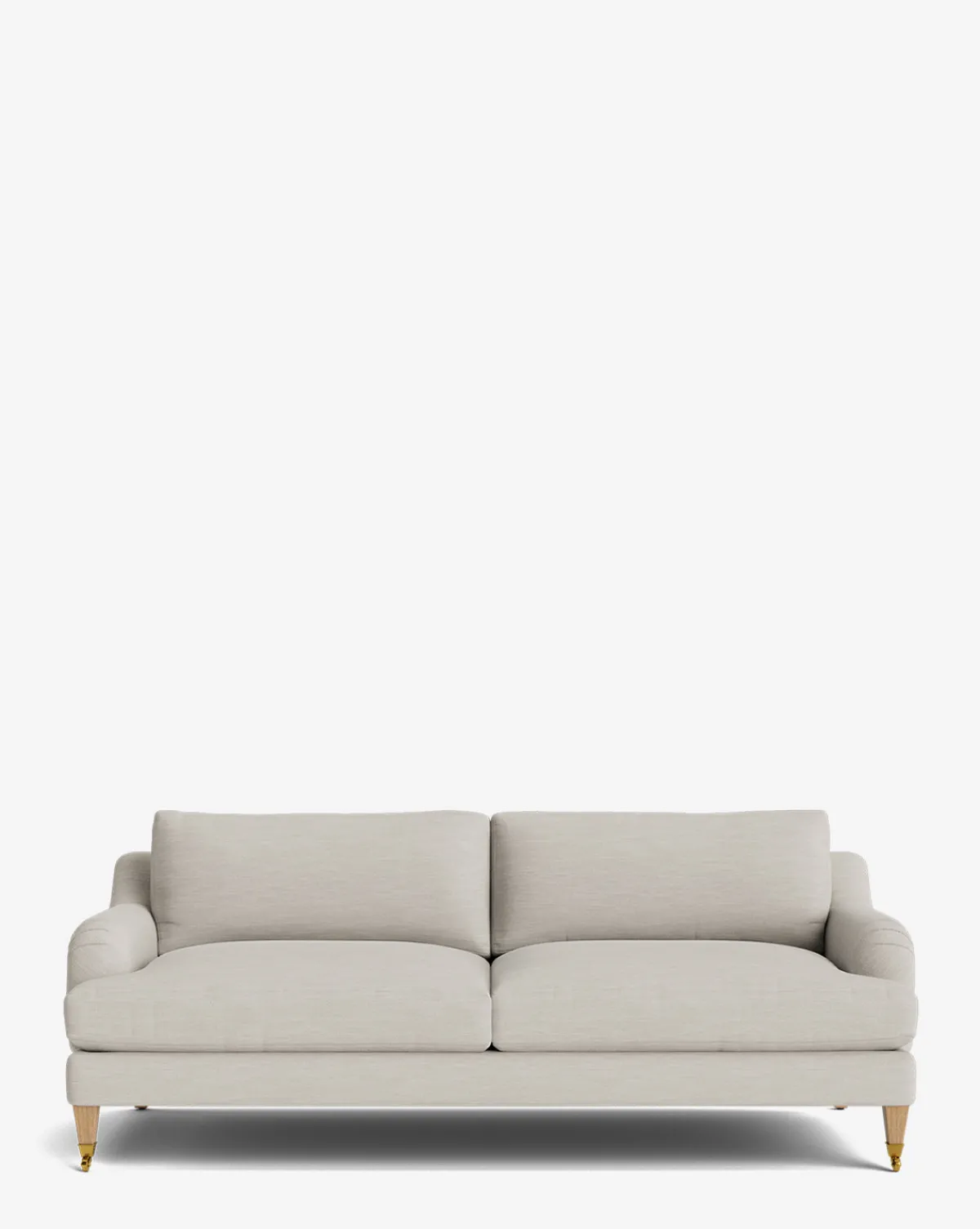 Our Lucille English Roll Arm Sofa is a modern approach to a traditional design. Crafted with luxurious comfort in mind, its classic format features a down wrapped cushion for a perfectly stuffed look and feel. A bench-made alder wood frame adds durability to the design, as four oak wood tapered legs give this sofa a stately presence. Completely customizable in a wide array of fabrics, make the piece your own with either a soft linen, or high performance crypton.