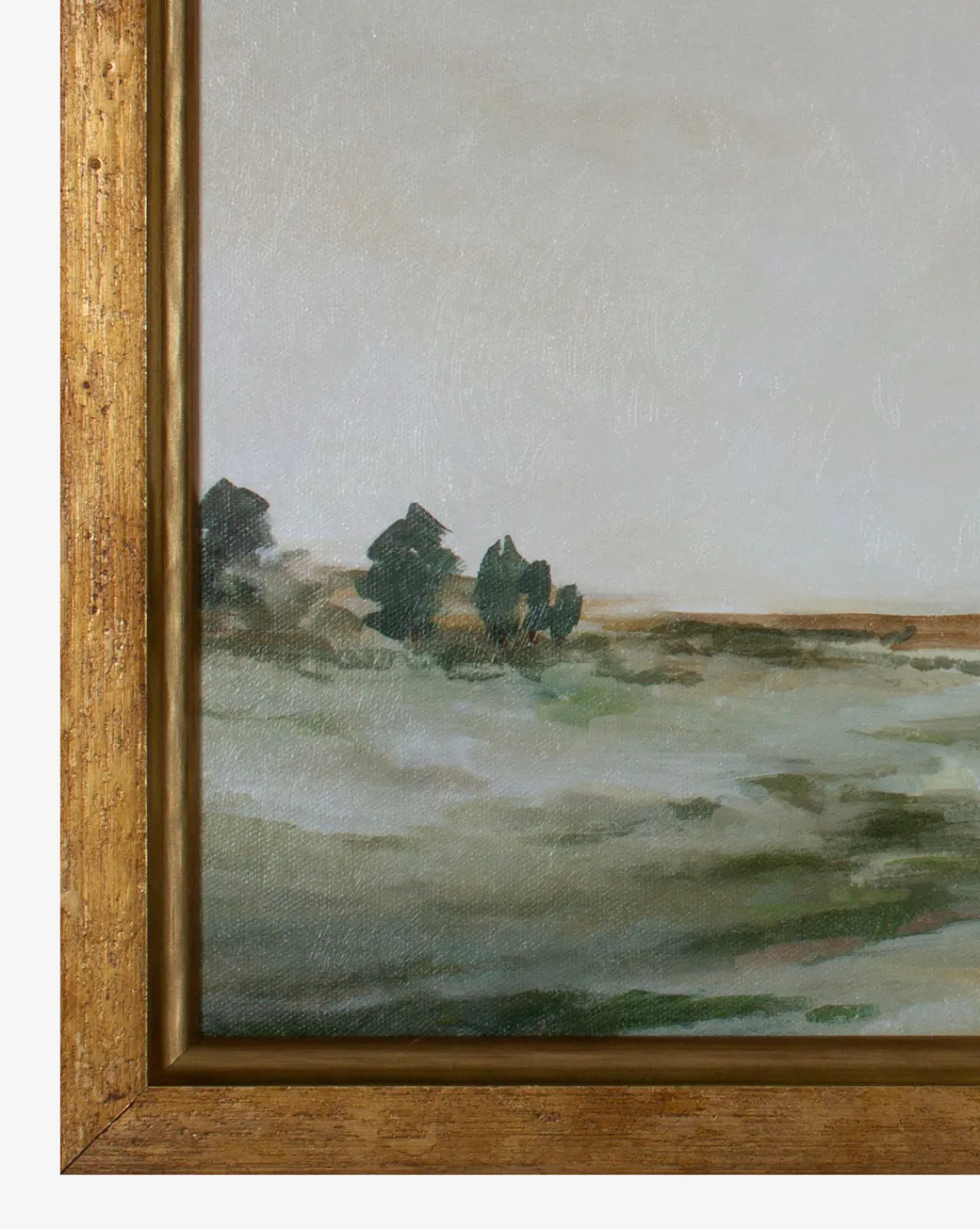 With thick brush strokes and a calming cool palette, Lush Landscape brings detail and a creative composition to your decor. Framed in aged gold wood, the canvas piece is created with gallery-quality materials.
