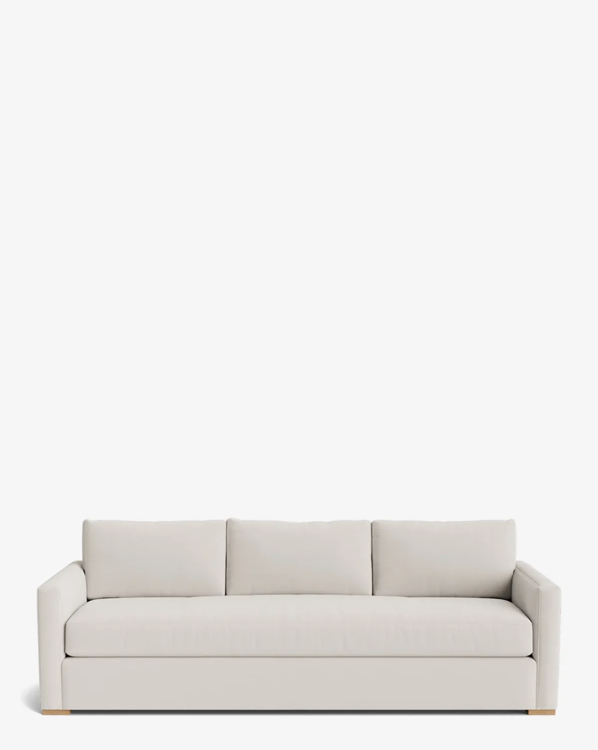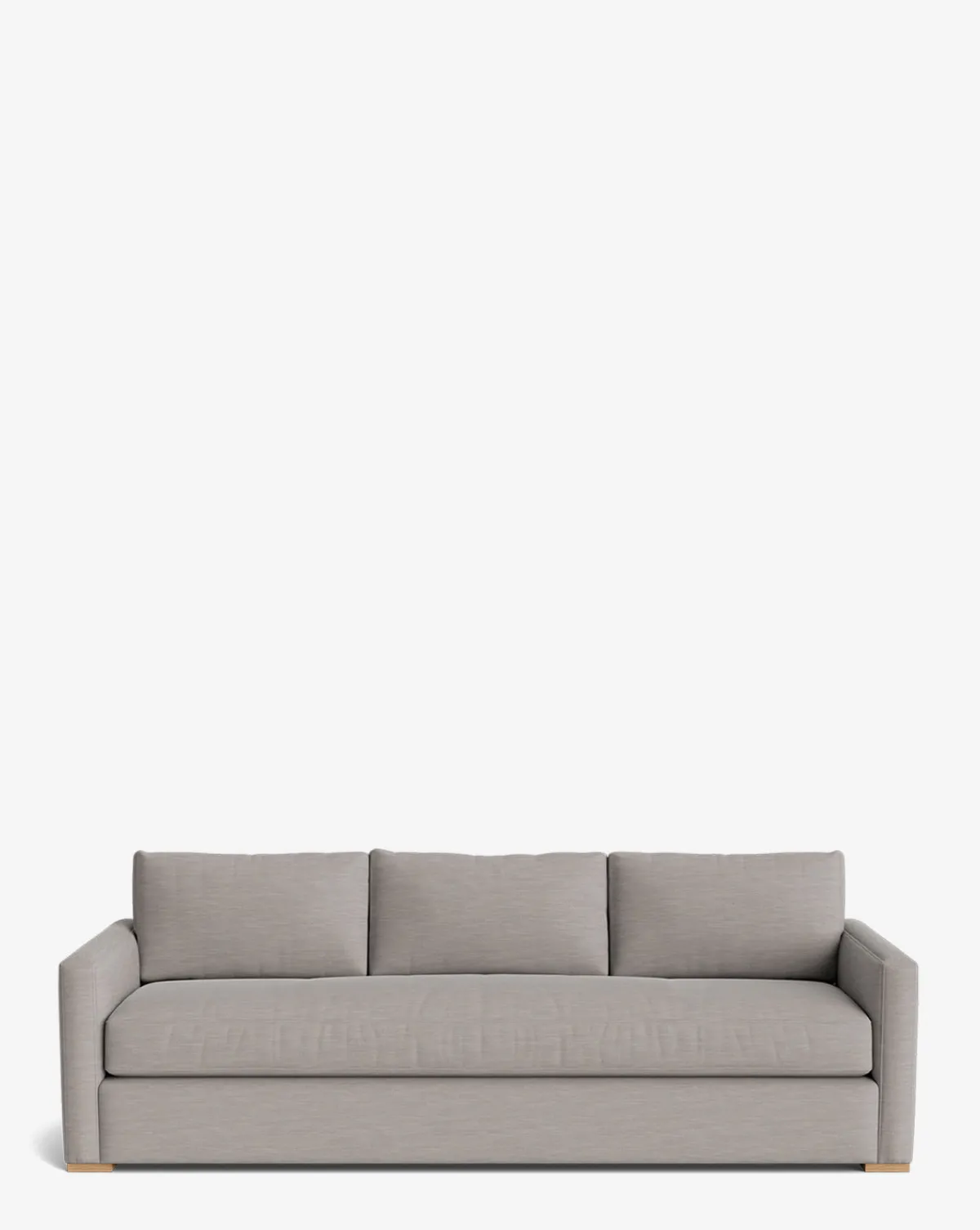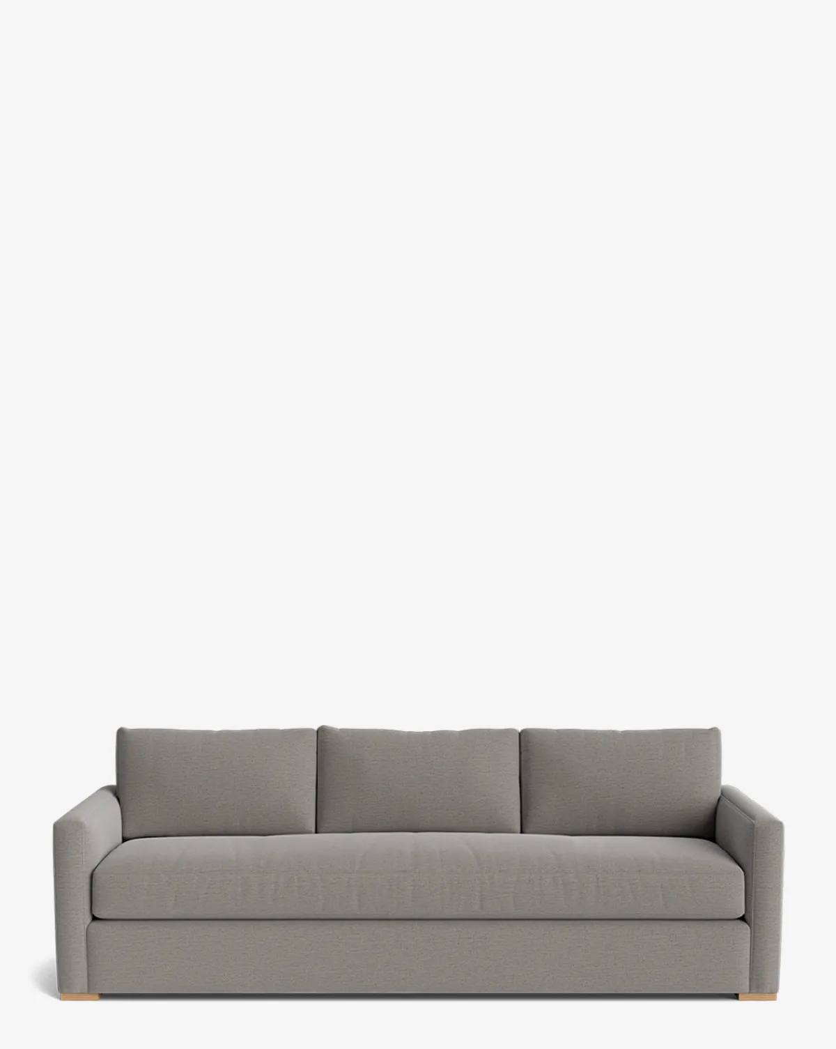 Both contemporary and classic, the streamlined Macy Upholstered Sofa is bench-made for quality and durability. Ideal for styling in living rooms or a more casual family gathering area, the sofa is customizable in a wide array of our favorite fabrics. Down, feather, and foam-core cushions make this piece luxuriously soft, as its deep design brings ultimate comfort to your space.
