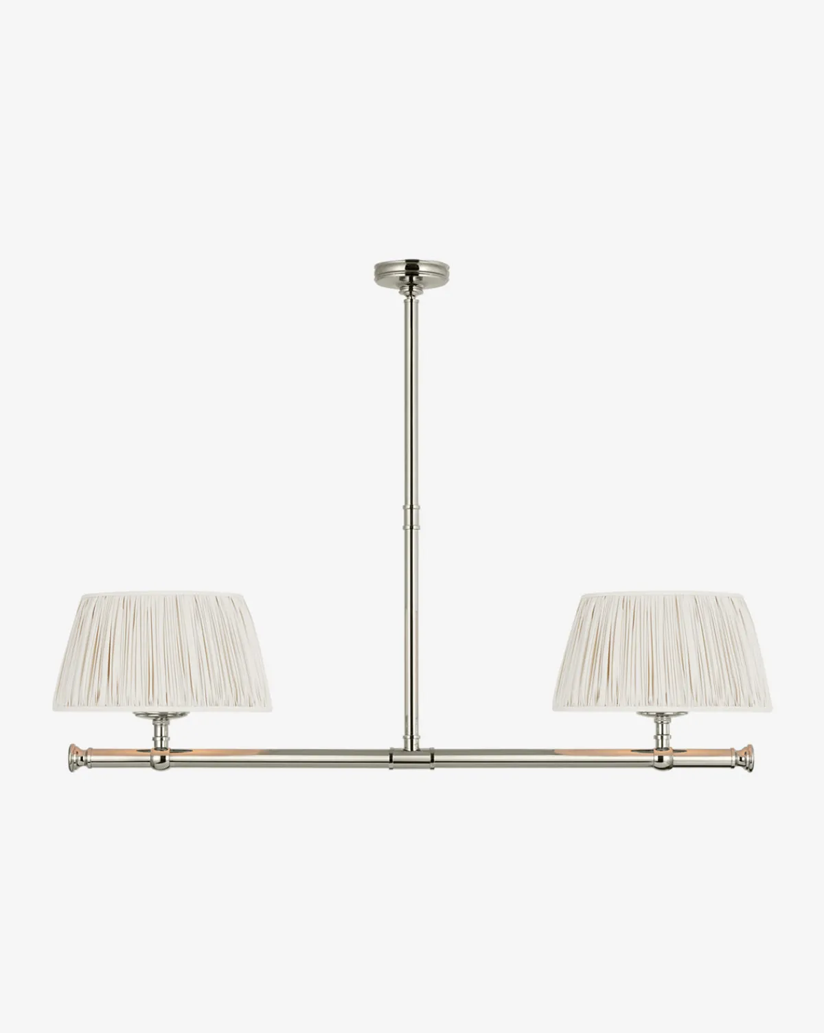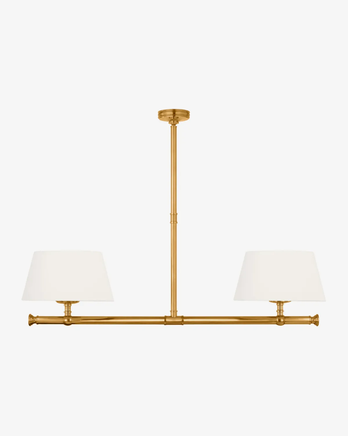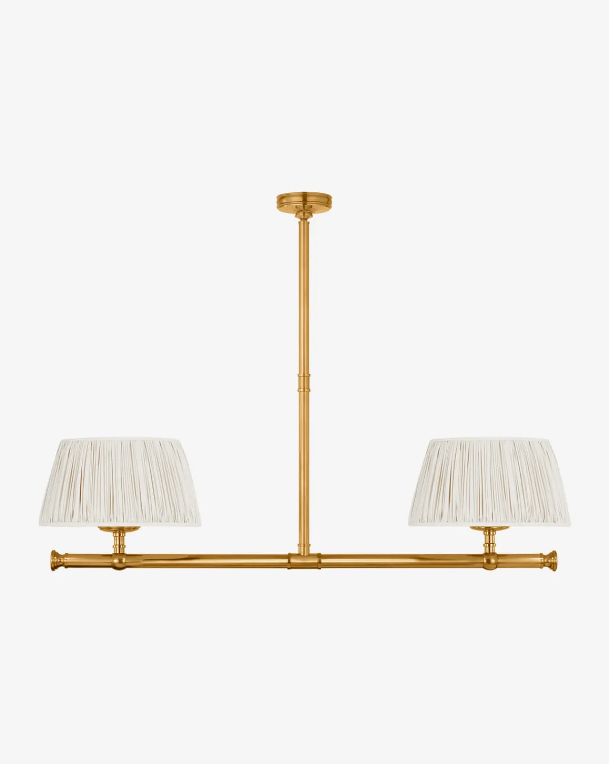 Elegant and geometric, the Marion Linear Chandelier boasts thoughtful craftsmanship with its subtle details. The sleek structure is available in your choice of finish to complement the simple linen shades.