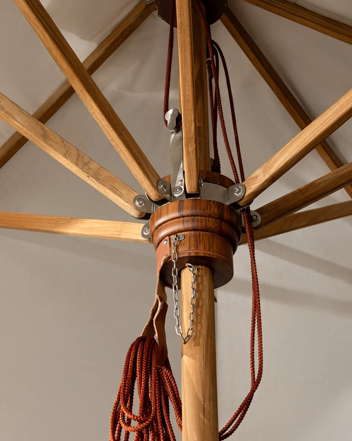 In a classic and playful design, the Marques Outdoor Rectangular Umbrella brings beautiful functionality to your outdoor furniture. The weather-durable acrylic features leather details and a teak pole.