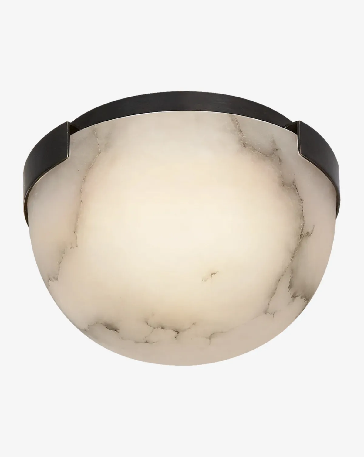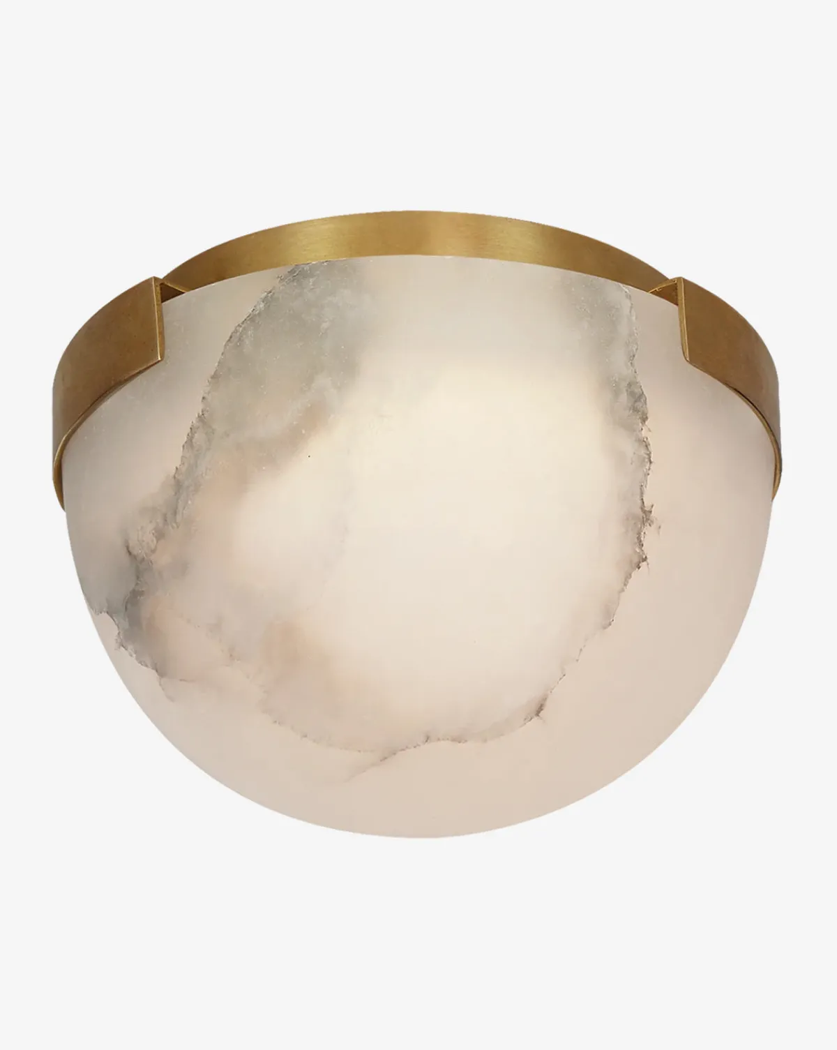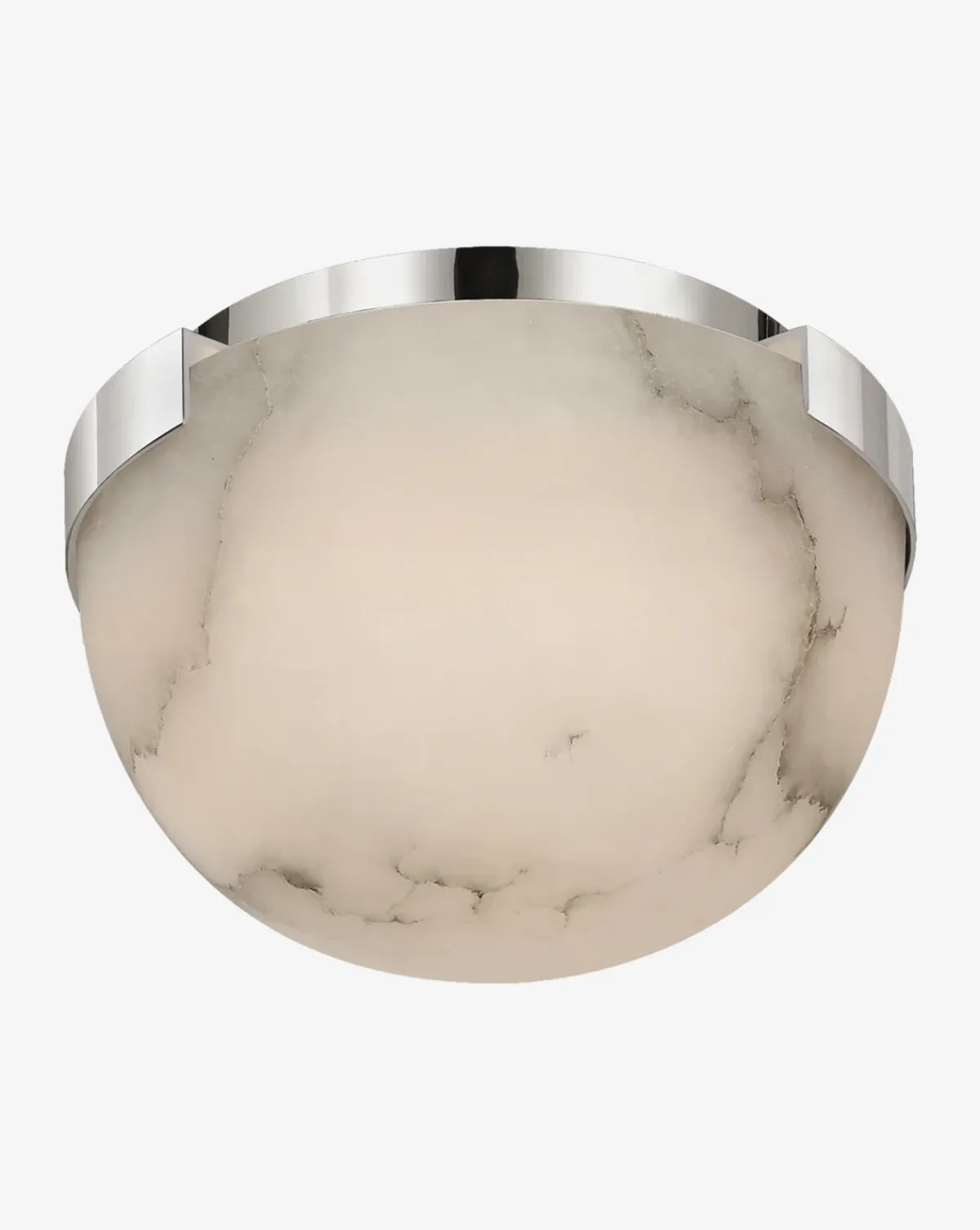 Modern and elegant, our Melange Flush Mount features a pure alabaster shade. Its circular beveled base is offered in three sleek finishes, each bringing a different feel to the design.