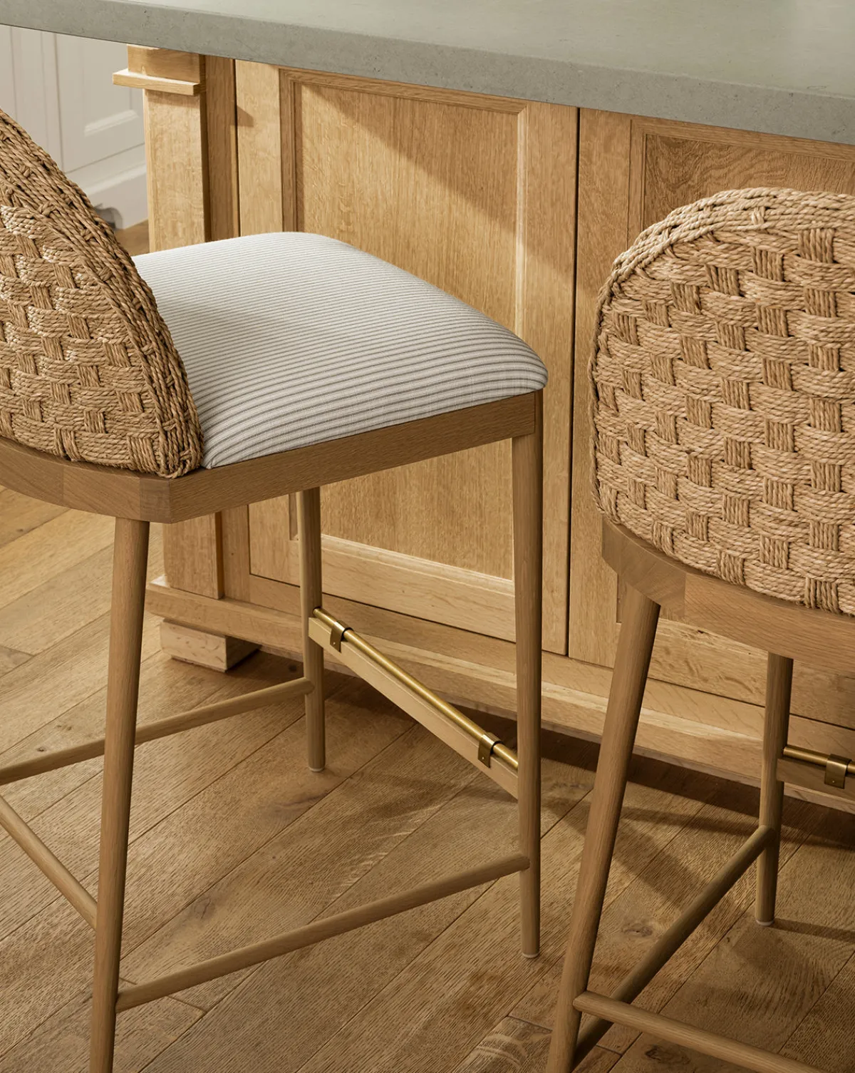 - Solid Oak Frame, Water Hyacinth Back, Foam FillFabric Description: