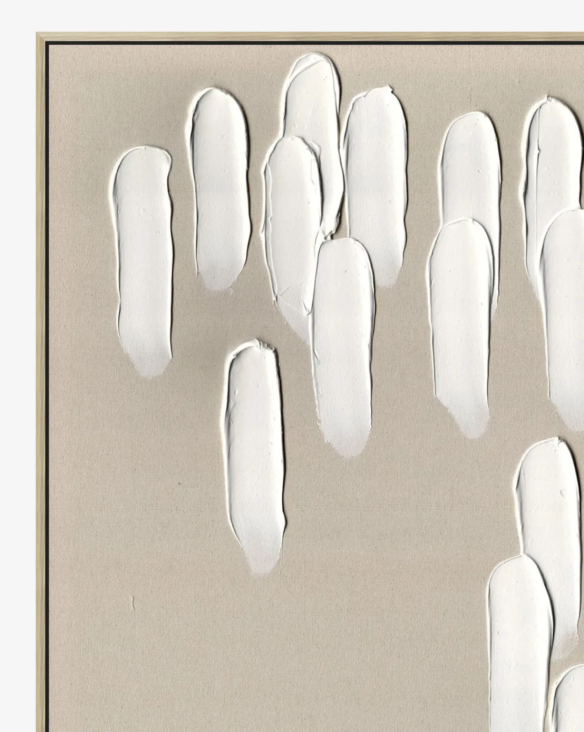 Hand-painted and fitted in a natural woodgrain frame, Neutral Cascade I brings dimension to your space within a simple neutral palette. This piece draws the eye with its unique brushstrokes on the raw canvas.