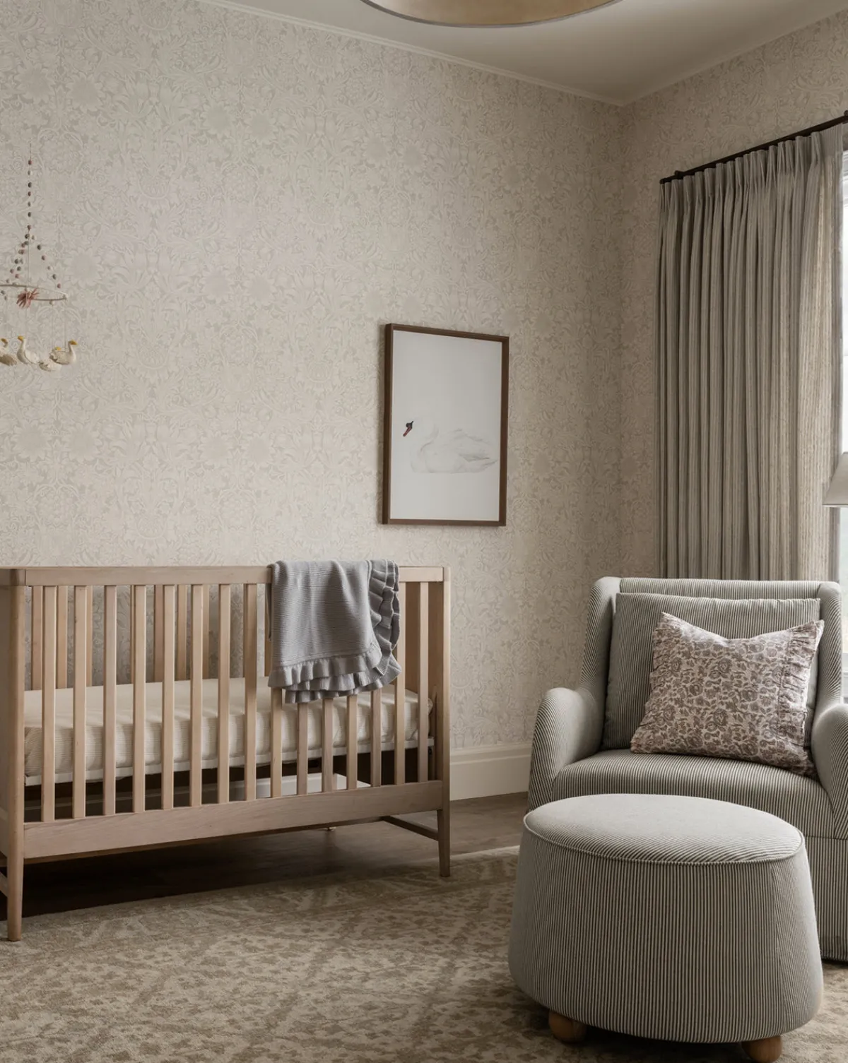 Mounted in a walnut wood grain frame, Neutral Swan is a giclee print on gallery-wrapped canvas. The detailed swan displays masterful technique in a calming composition and palette, bringing a beautiful and charming detail to the room.