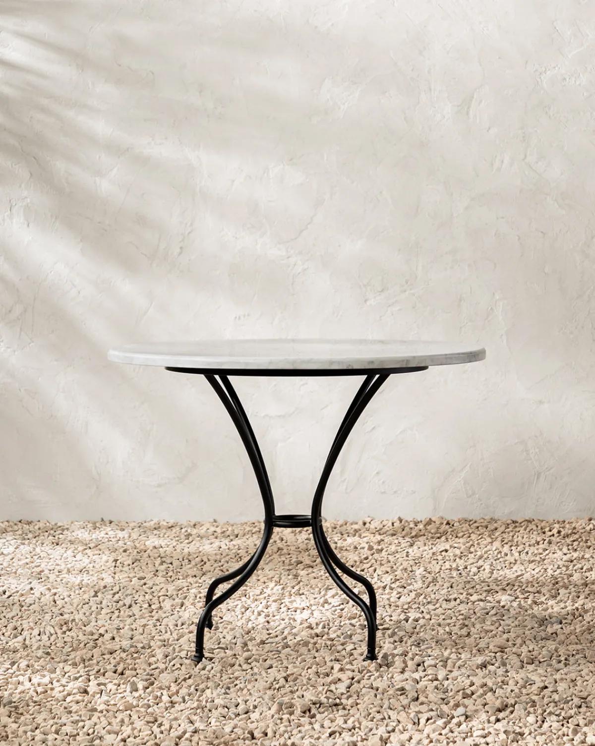 With a sleek solid white marble tabletop supported by an intricately detailed powder-coated steel frame, our Pomeroy Outdoor Bistro Table was designed with beauty and durability in mind. With its timeless form and refined luxurious feel, it offers an enduring elegance that enhances both indoor and outdoor settings.