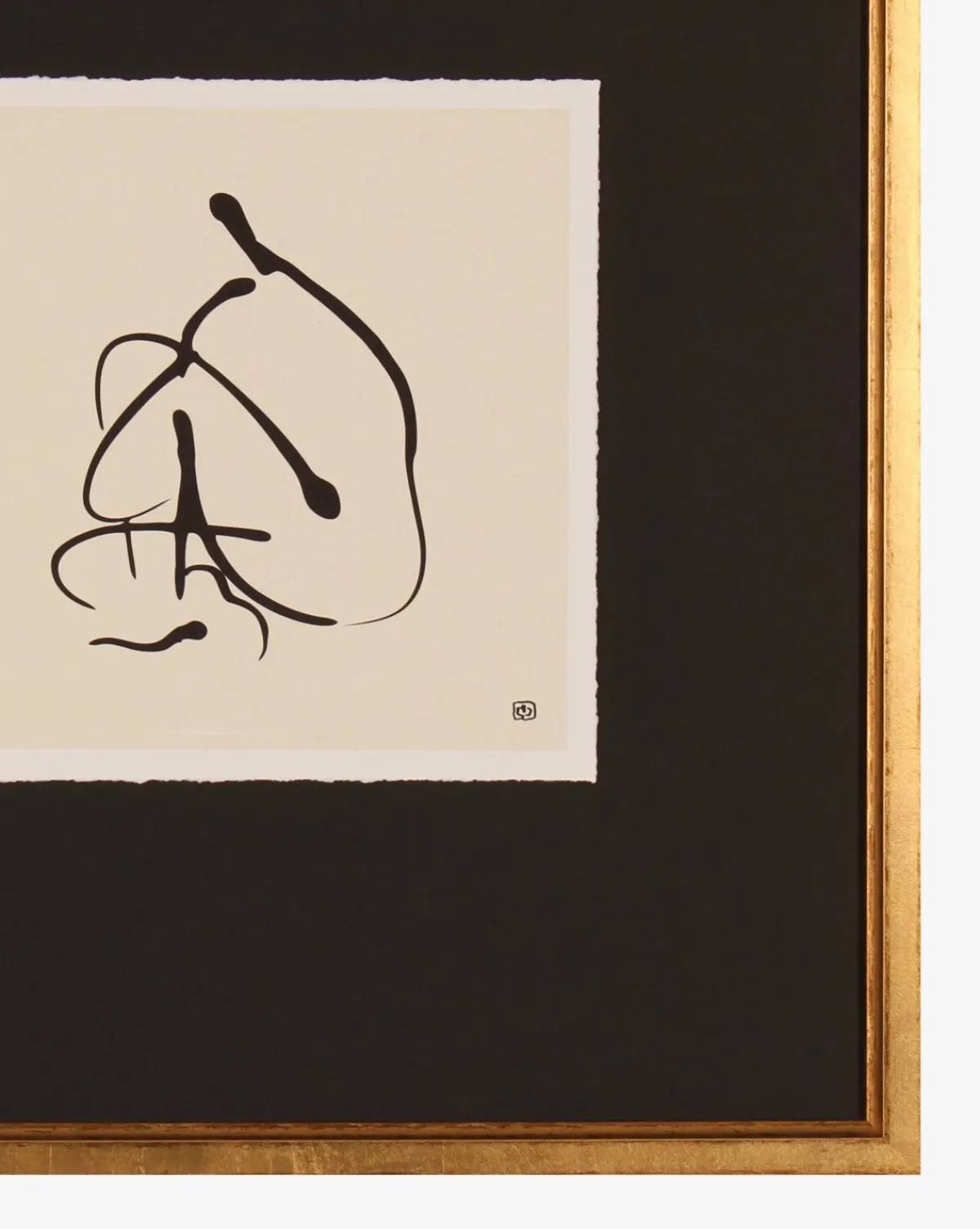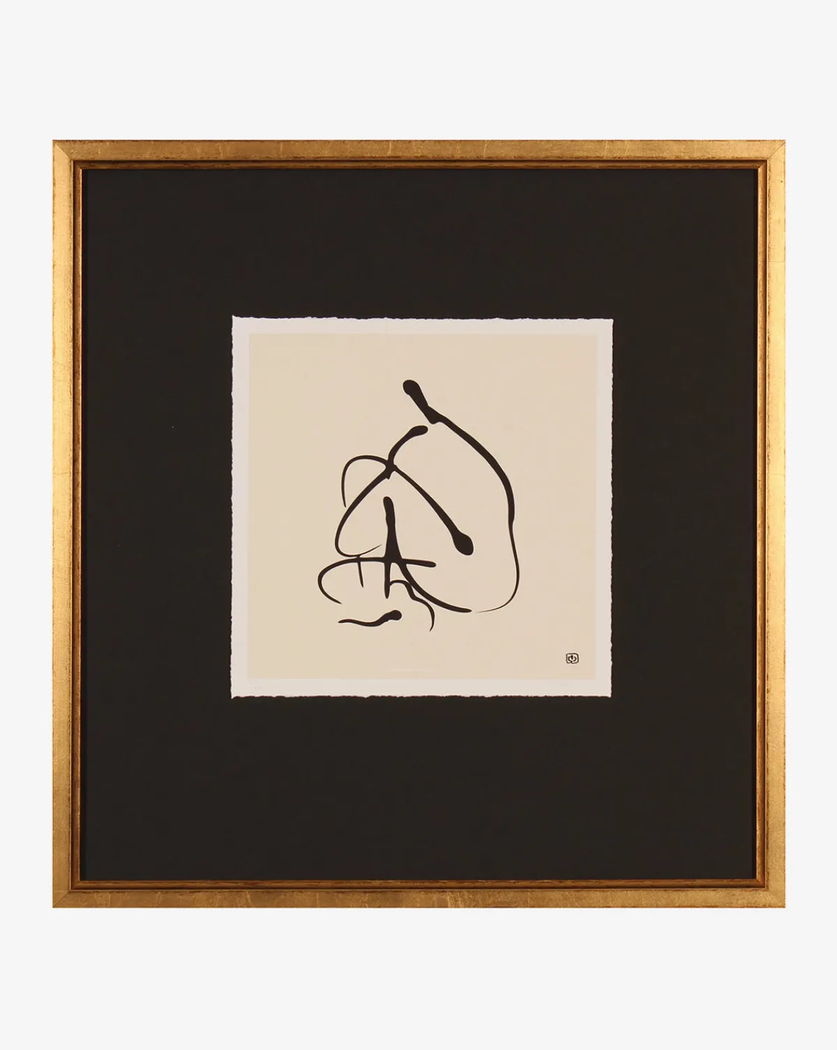 An abstract outline of a posed person, Pose Sketch 2 is composed of simple black brush strokes. Its composition is captivating, elevating the decor in your space. With a gold wood frame, the piece has a simple palette with gallery-quality materials.