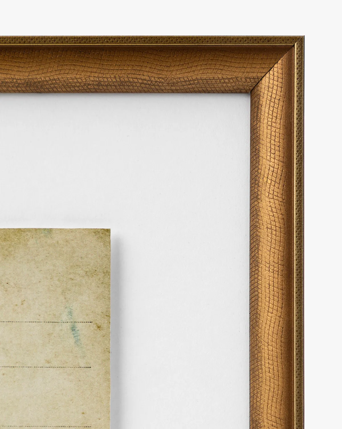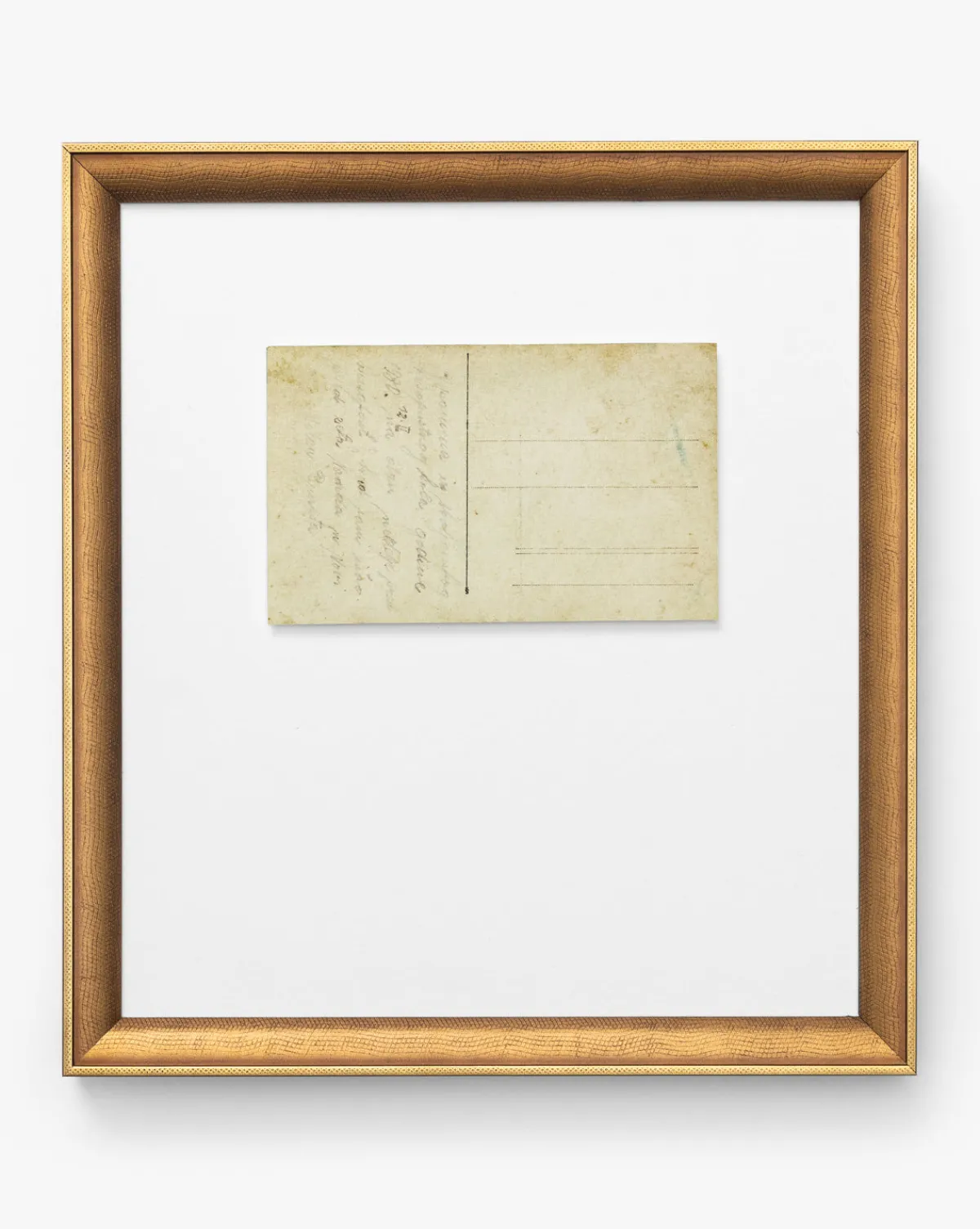 With the charming details of a vintage note, Post Card Address brings authentic detail and a romantic feel to your space. The piece is presented as a giclee print on paper within a gold-finished wood frame.
