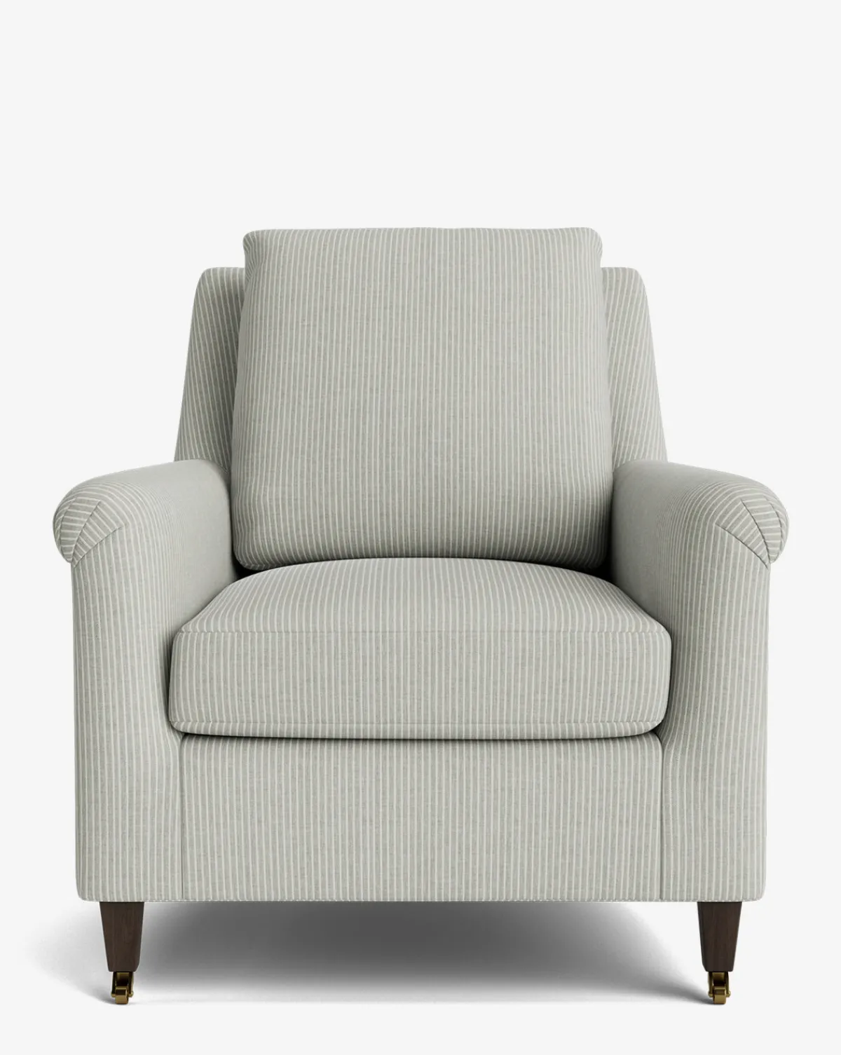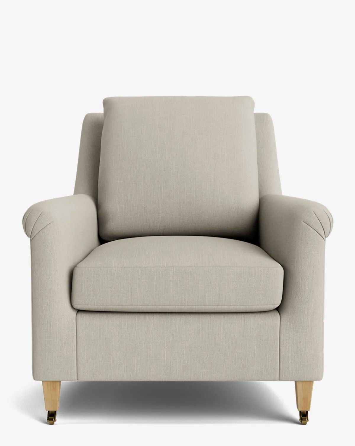 An updated take on a traditional design, our Reedley Lounge chair was designed with luxury in mind. Featuring a rolled arm detail and feather blend cushions held by its bench-made frame, the deep lounge chair is both sophisticated and inviting.