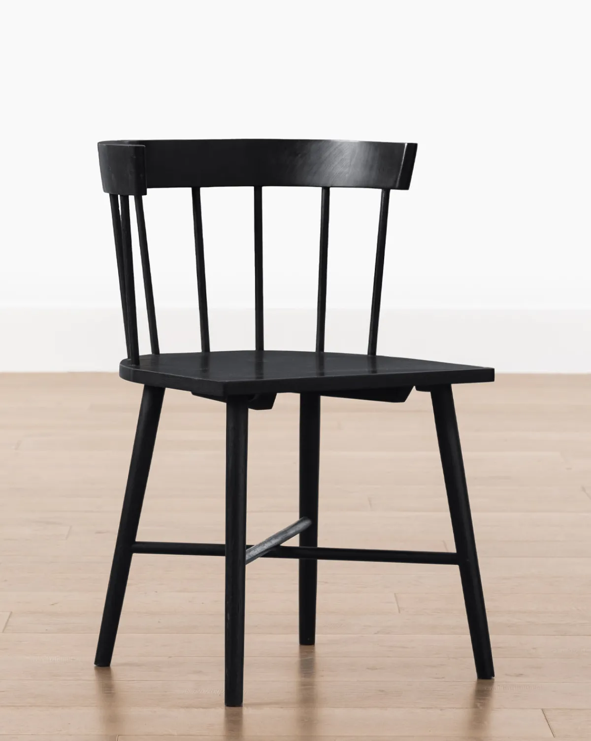 When we designed the Reeves Dining Chair, we wanted to mesh contemporary and traditional styles seamlessly, and we think we did just that! From the spindles to the architectural base finished off with tapered legs, this chair redefines classic design through its thoughtful attention to detail. Crafted from solid, kiln-dried oak and finished in a modern black hue, this chair adds dimension to your dining room with ease.