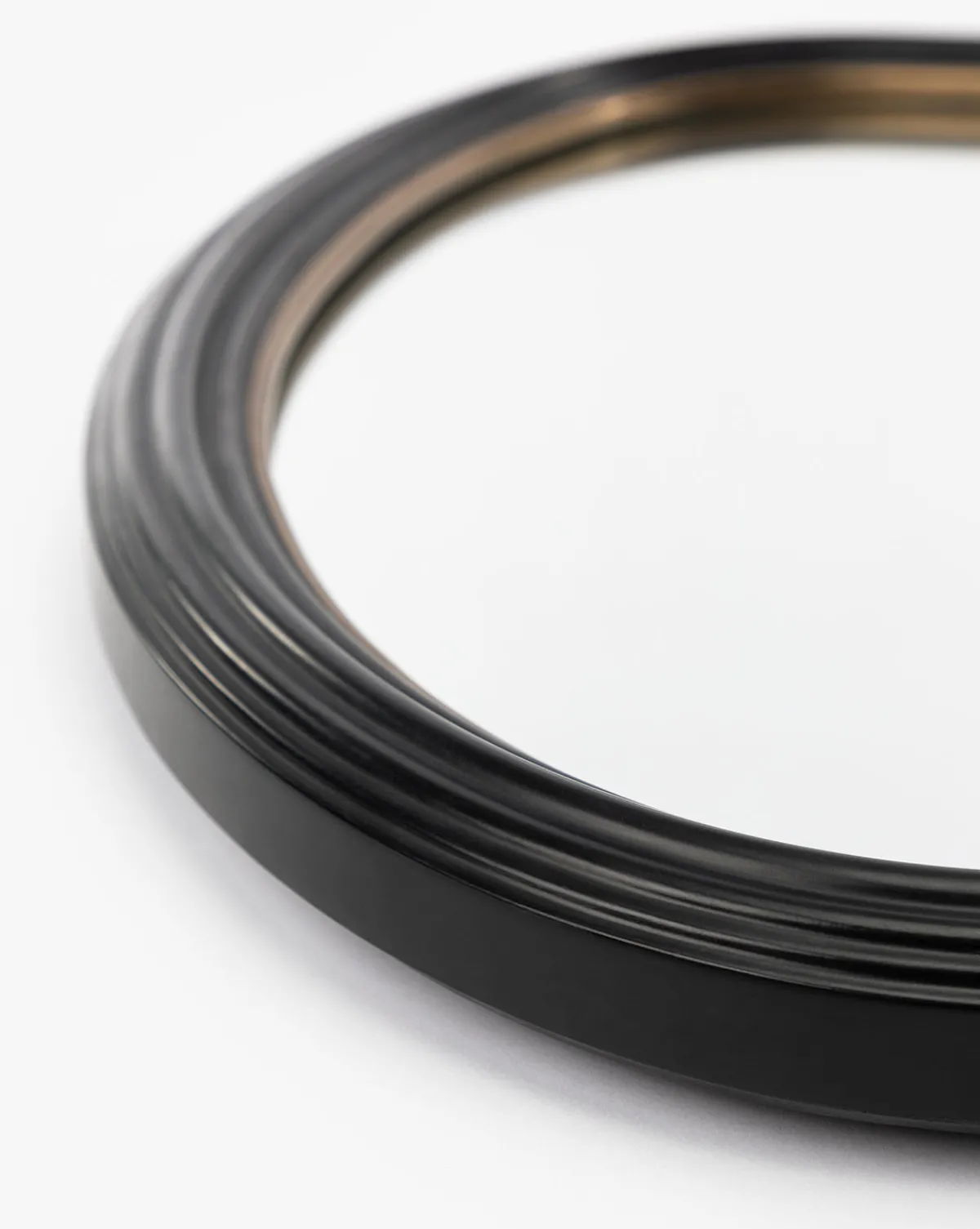 With rounded edges and a thick frame, the Samuel Wall Mirror is refined and shapely. The wood frame has a black finish, for a simple aesthetic complemented by ridged detail in the material. In a transitional style, the shelf mirror brings an artistic touch to your walls.
