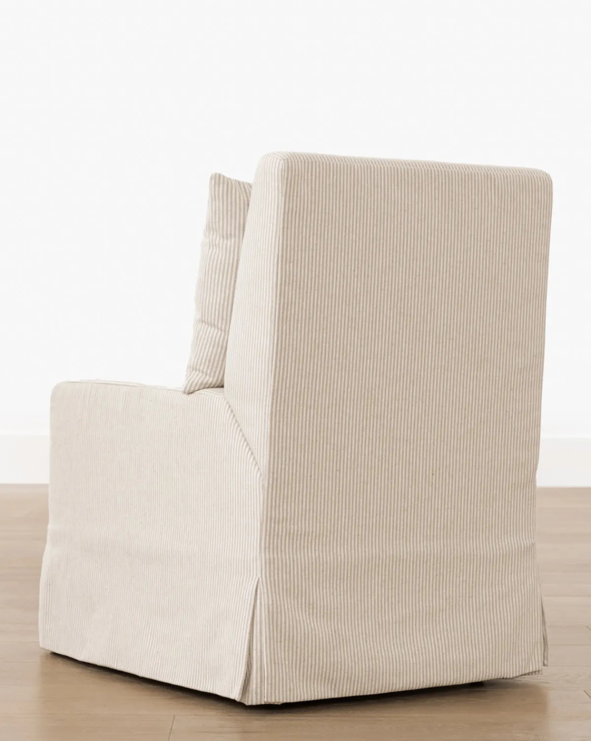 In an inviting and full design, the Scaletta Desk Chair is both casual and elevated. Upholstered in a natural and ivory striped linen, the ticking stripe desk chair lends comfort and dimension to your styling.
