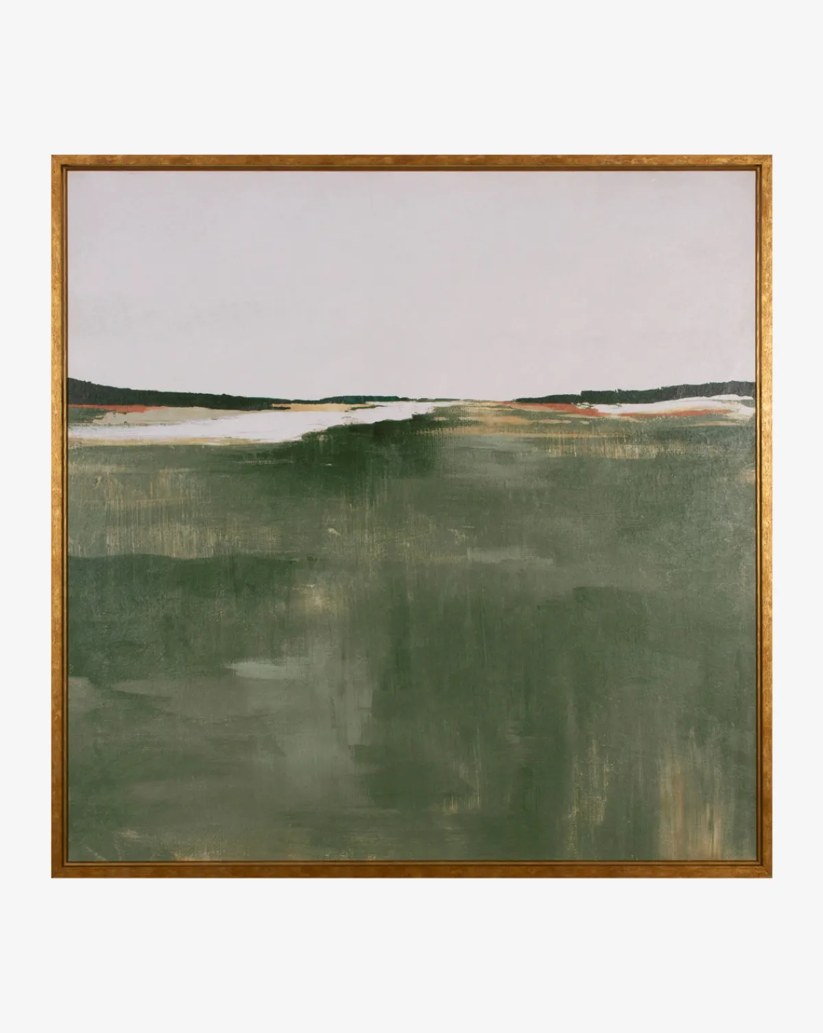 A serene and abstract scene comes to life with expressive brush strokes in Sea of Green. The piece is presented on canvas within a wood frame, lending interest and dimension to your wall treatments.