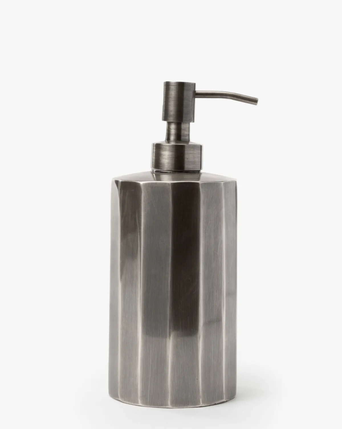 Sleek and timeless, our Simone Metal Soap Dispenser brings style to bathroom decor. Made from bath-grade stainless steel in a dark antique silver finish, the soap dispenser is durable and functional.
