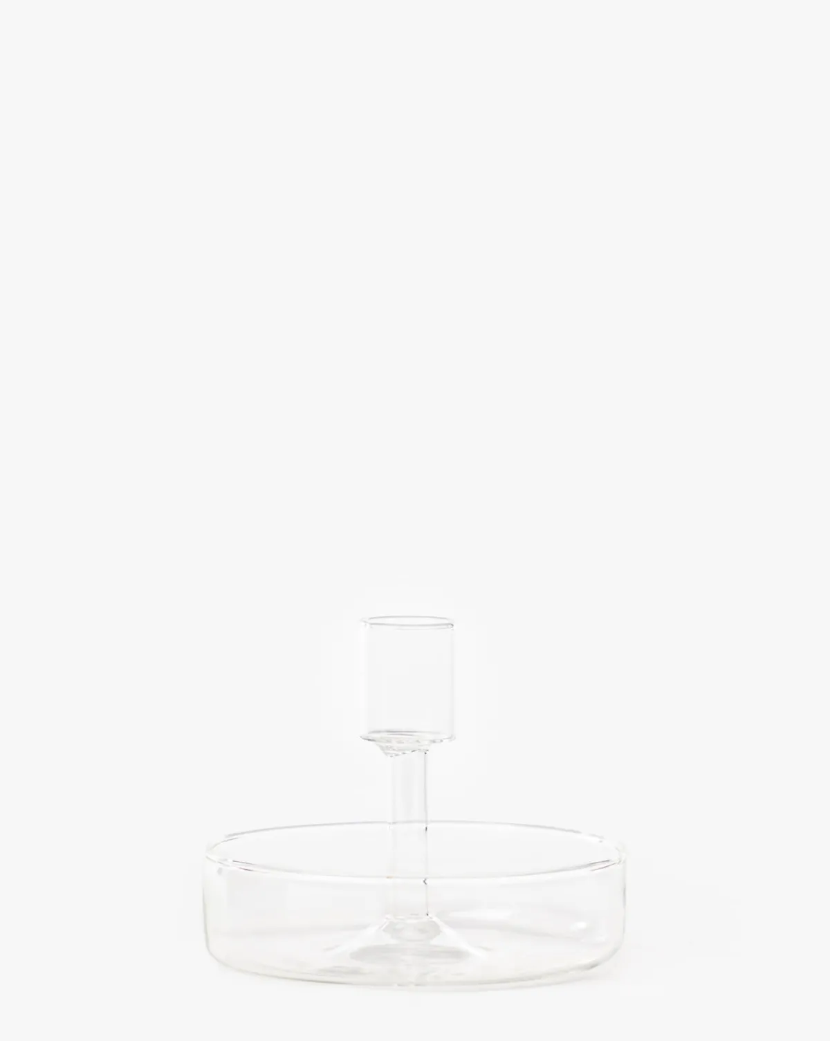 Bring light into your space with the elegant Sofia Candle Holder. Crafted entirely from glass, the simple design of this taper candle holder lends subtle texture and detail to your candle displays from countertops to console vignettes. The sleeve and holder are sold separately.