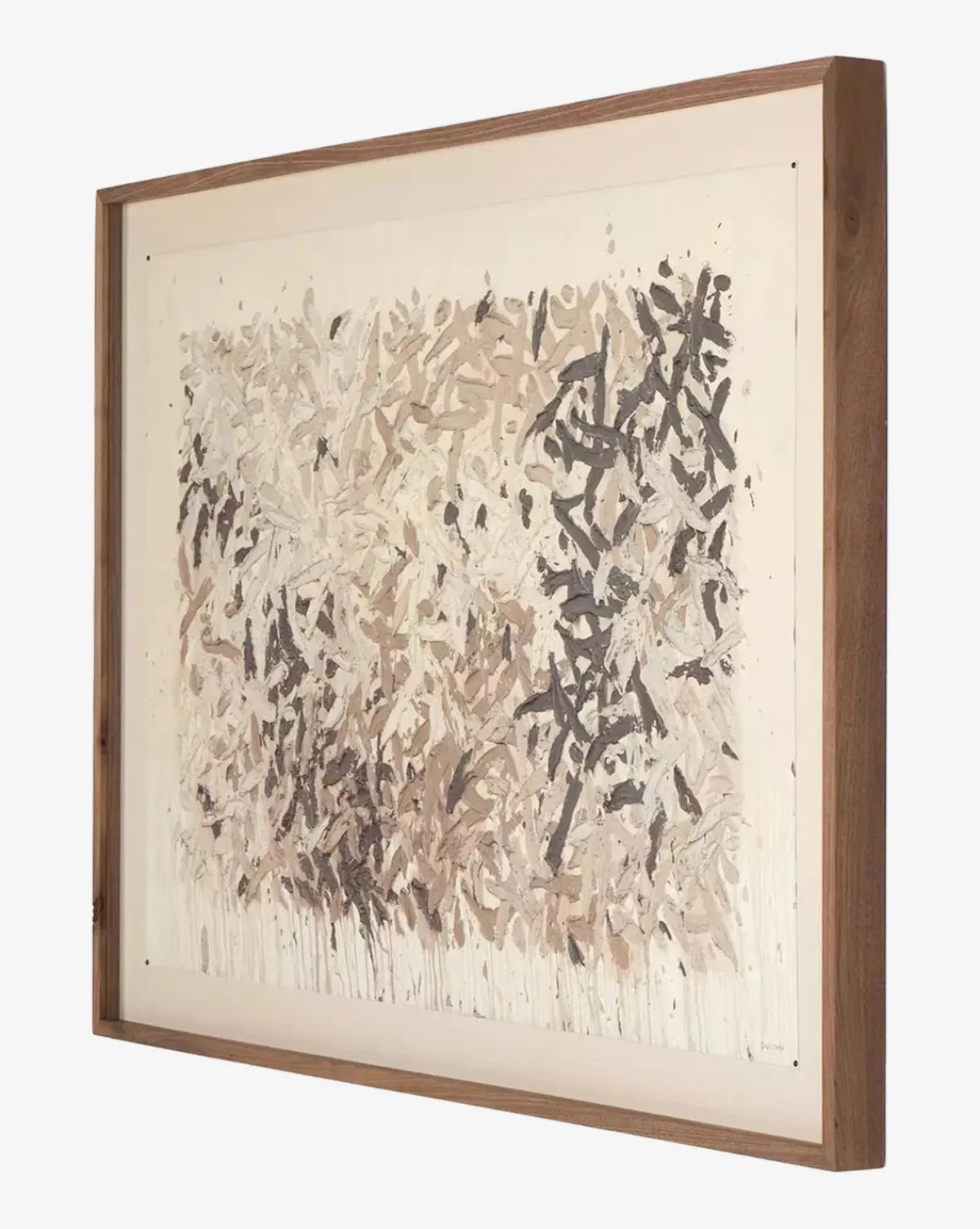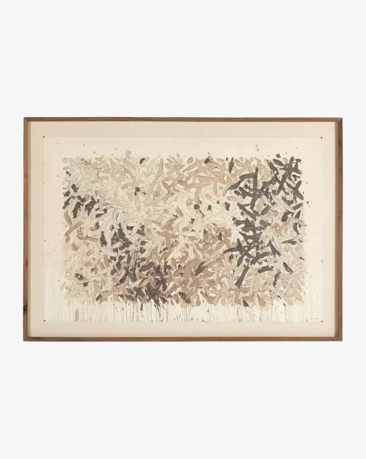 With expressive line work, Still His People invites you into its scene. Featuring a captivating abstract composition, the piece is presented on matte canvas within a rustic walnut frame.