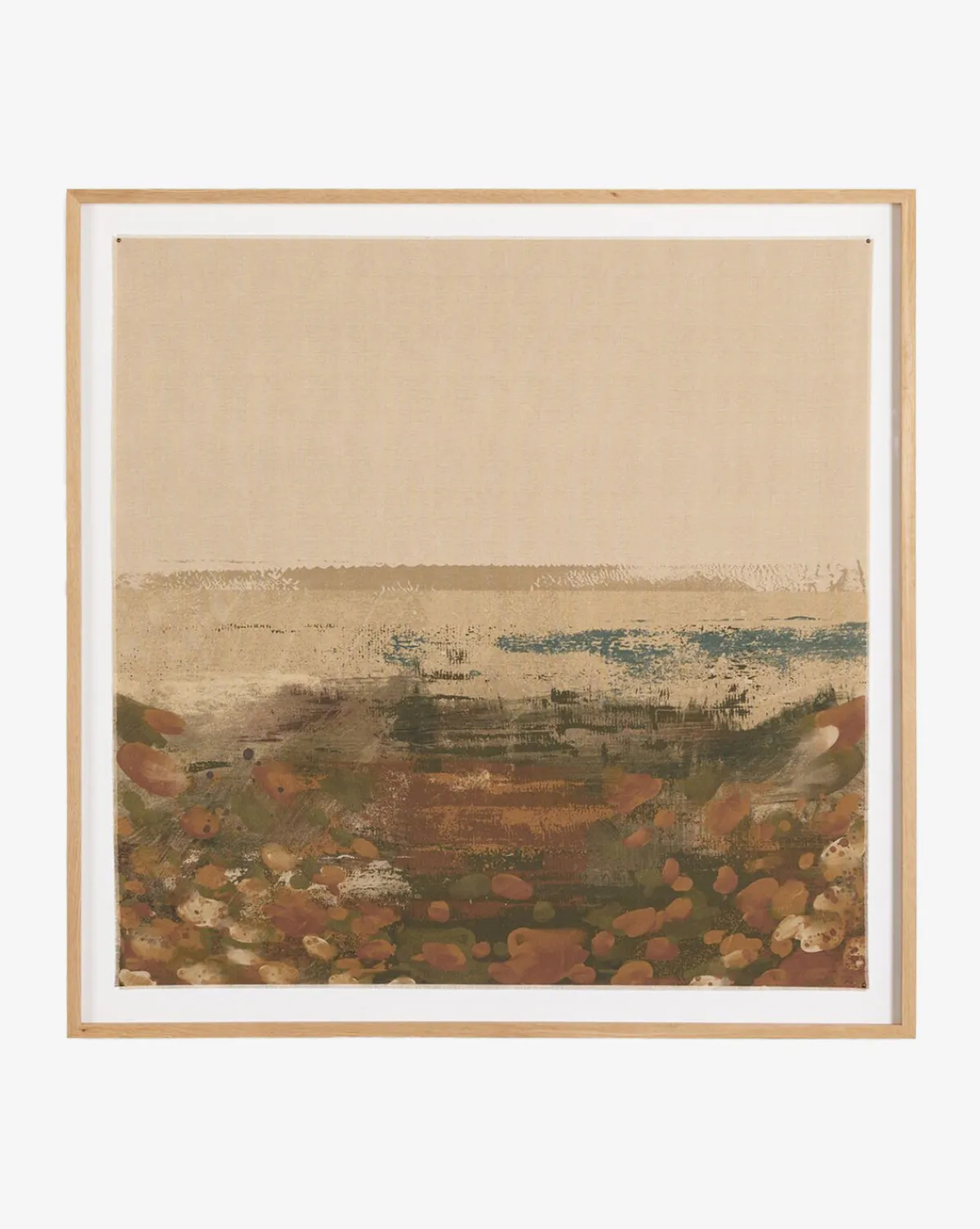 In an emotive composition, The Meadow by Coup D’esprit is presented on raw canvas within a white oak frame. Exploring tone and texture, this landscape brings beauty and intrigue wherever it is styled.