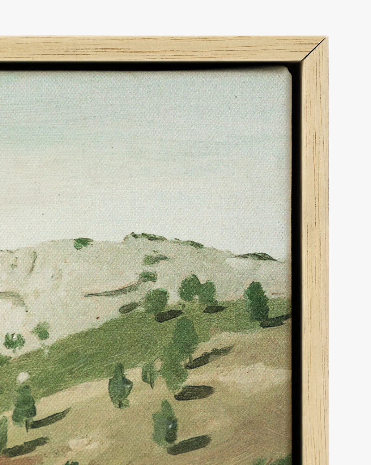 A serene and inviting scene comes to life with expressive use of color in View of the Town. Presented with museum-quality materials, this landscape is a giclee print on gallery-wrapped canvas with textural artist enhancement within a natural oak frame.
