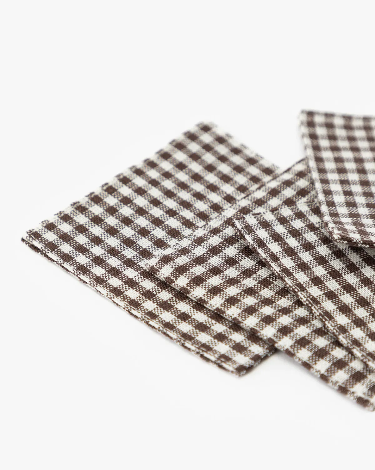 In a simple design, the Westport Linen Coasters add character and texture to your table. Each coaster is made from woven linen with a brown checked pattern.