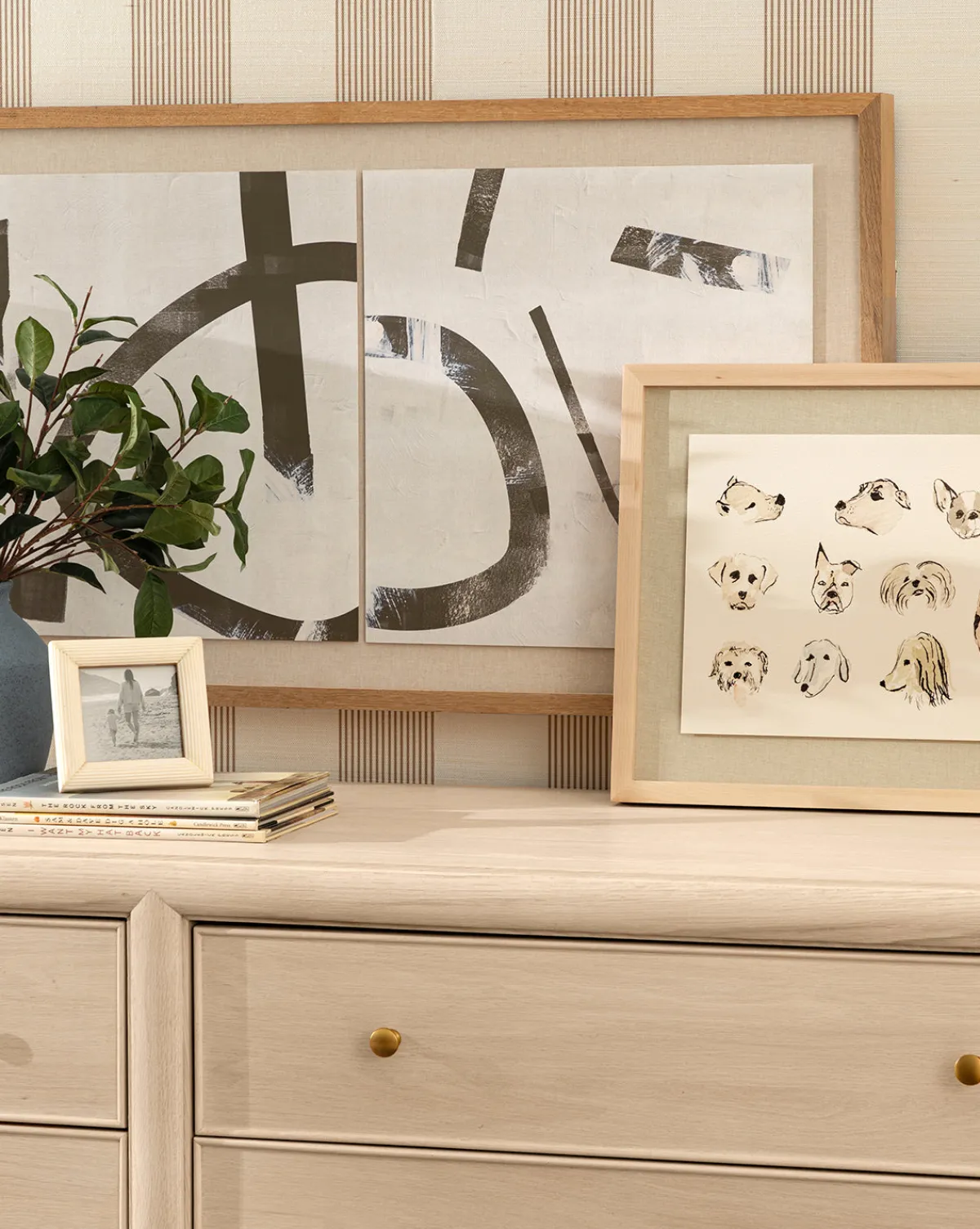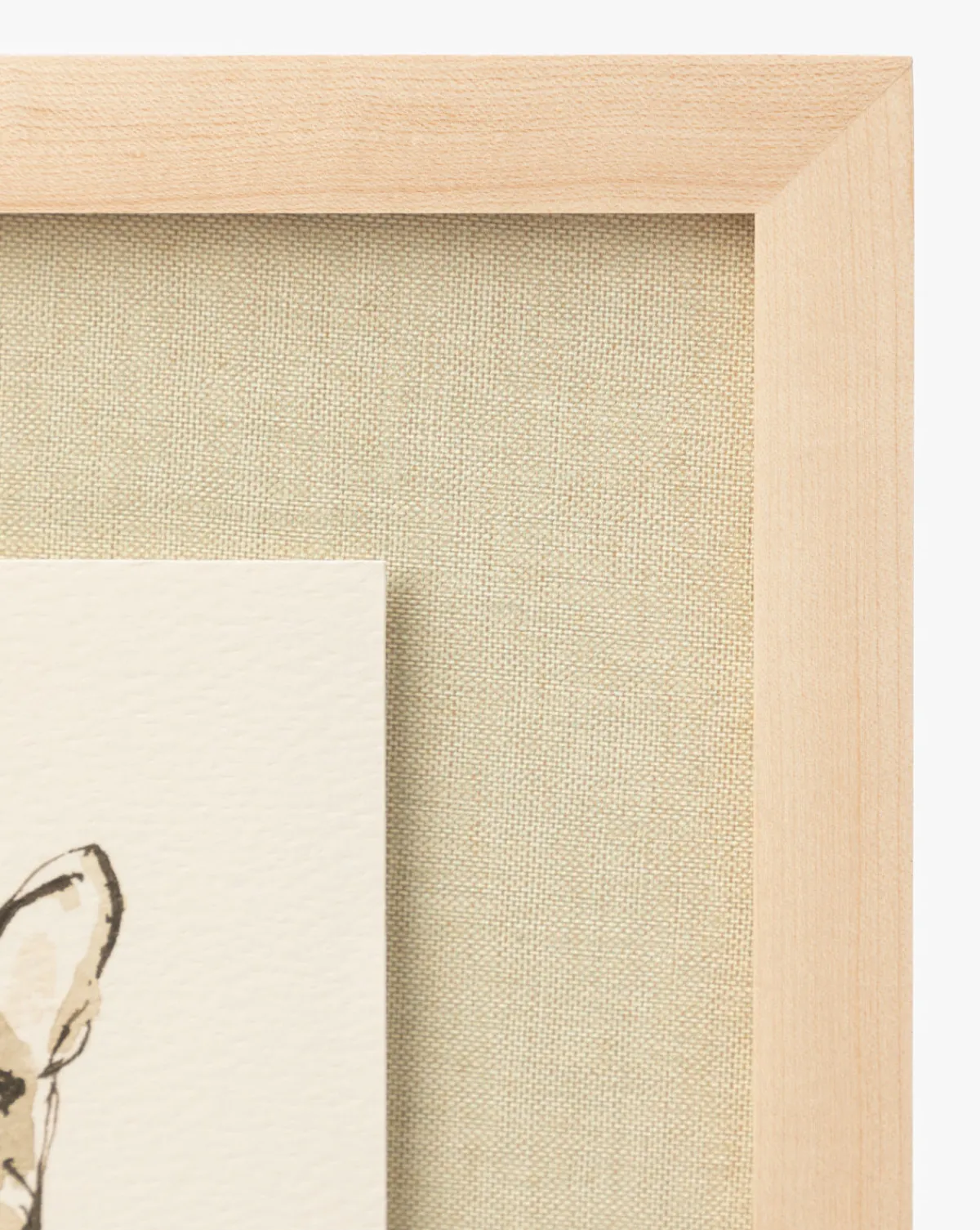 Clever and whimsical, Woof is a print on textured fine art paper. Complete with a natural maple wood frame, this piece is simple yet eye-catching, bringing imagination to your children’s room.