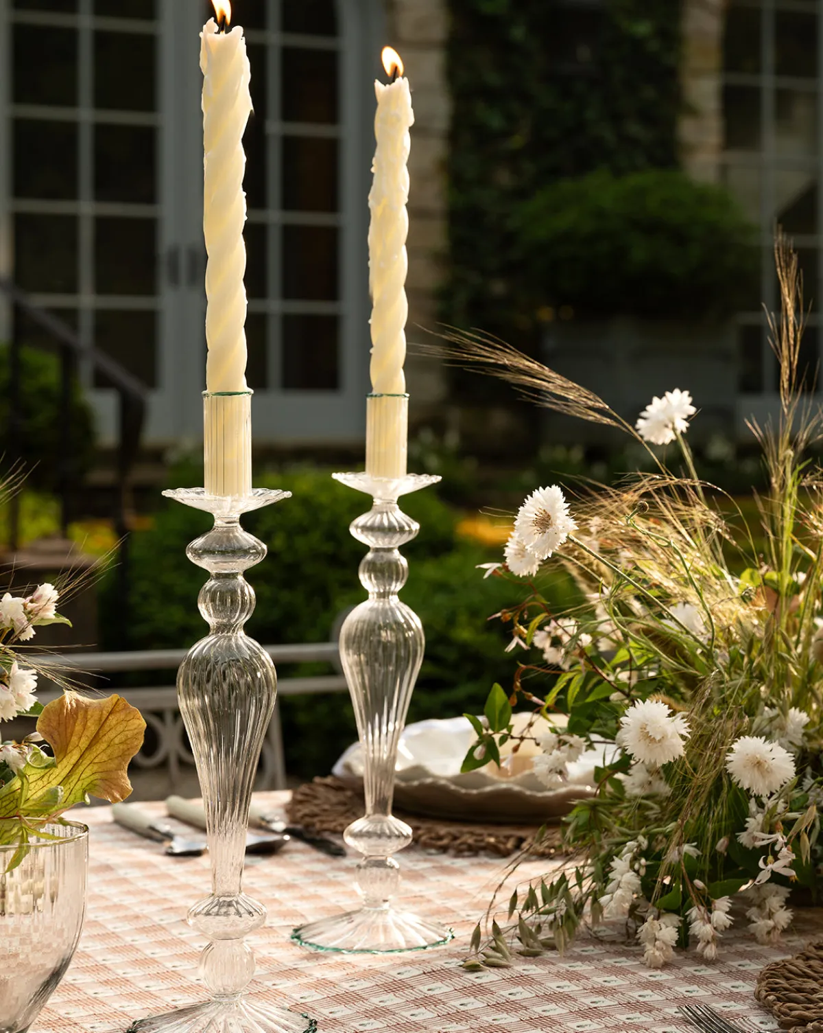The Effie Taper Holder is made from glass and made with intricate, traditional sophistication. Designed in collaboration with Loeffler Randall, this piece brings a considered aesthetic to your home with every detail.