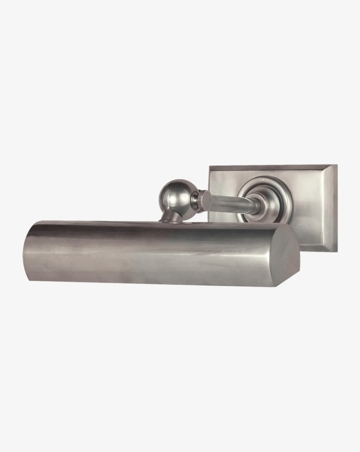 In a sleek and classic form, the 8” Cabinet Maker’s Picture Light reinvents the traditional style with your choice of beautiful finish. Featuring intentional details, the slim shade is complemented by an elegant backplate.