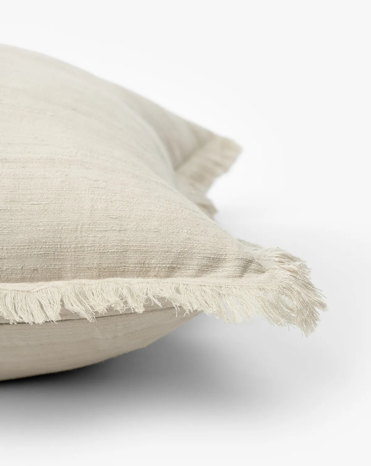 Composed with a thick, woven feel and subtle stripe, our Abbey Silk Fringe pillow cover takes you in with its depth defying coloring –– perfect for grounding your pillow collection or used for contrast. A sophisticated fringed edge lends added textural interest and whimsical flair.