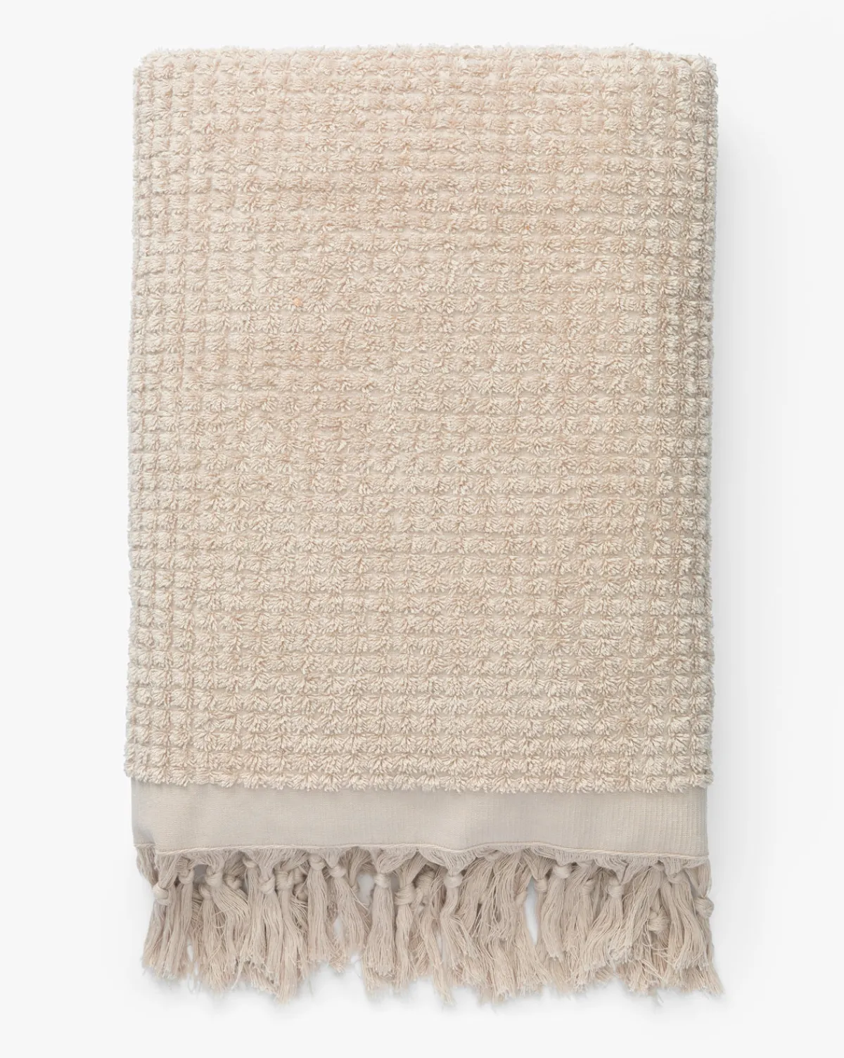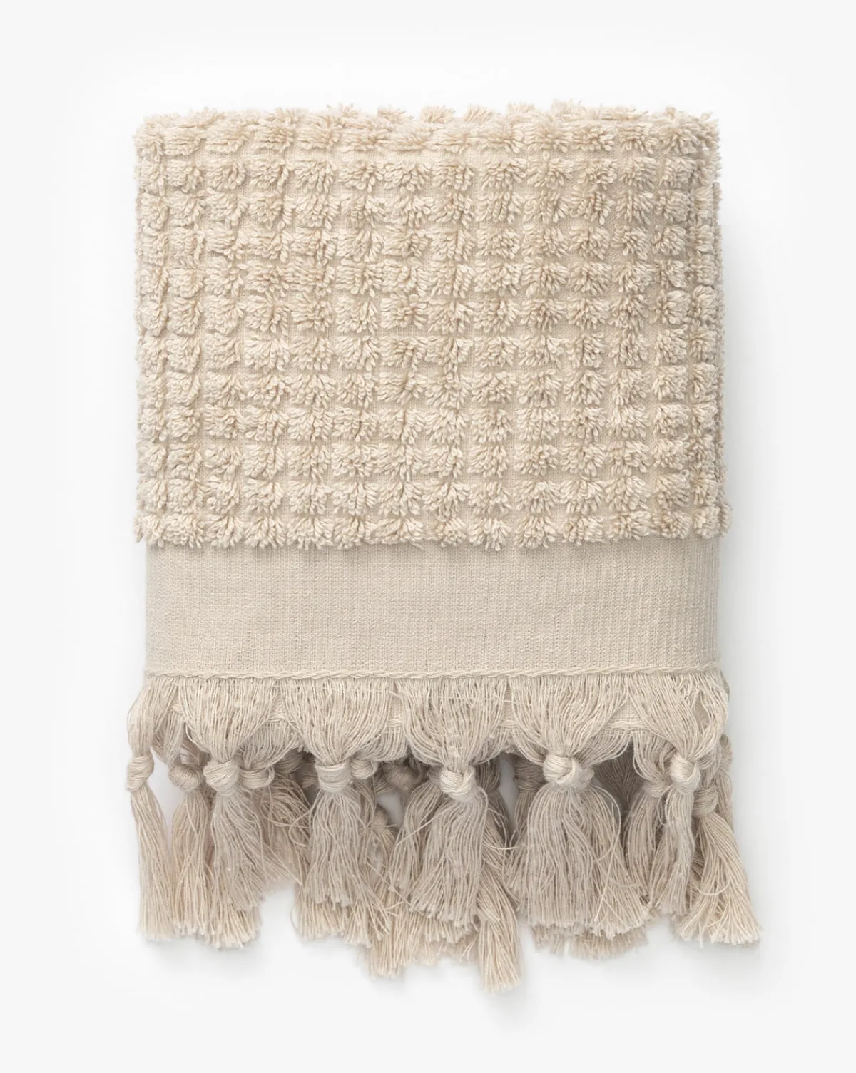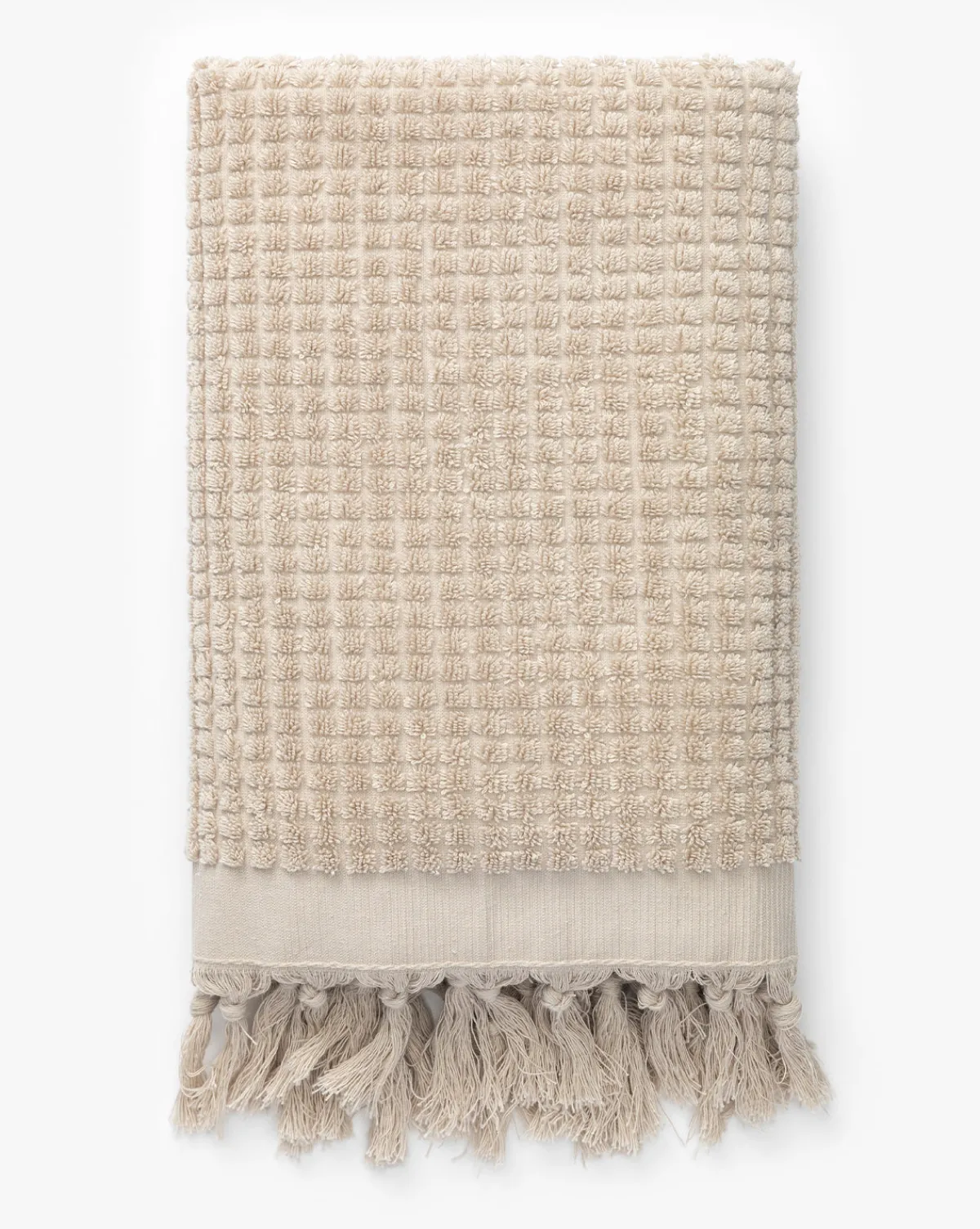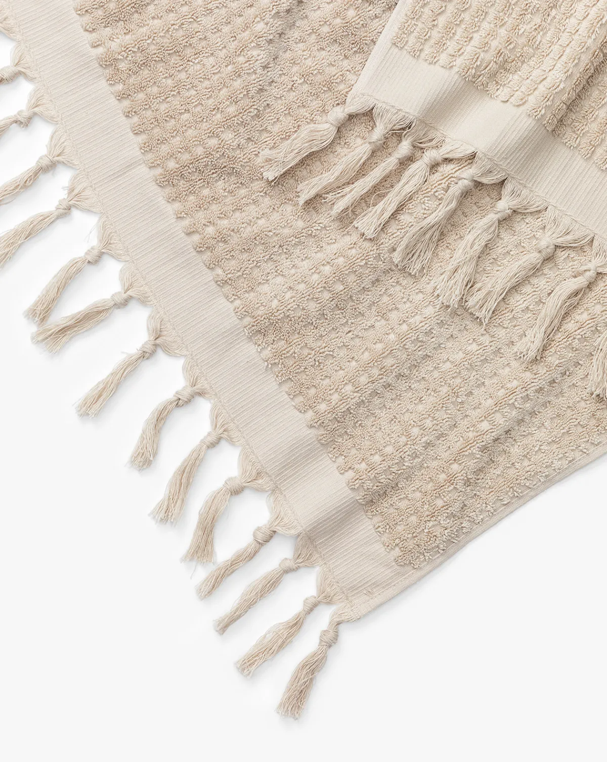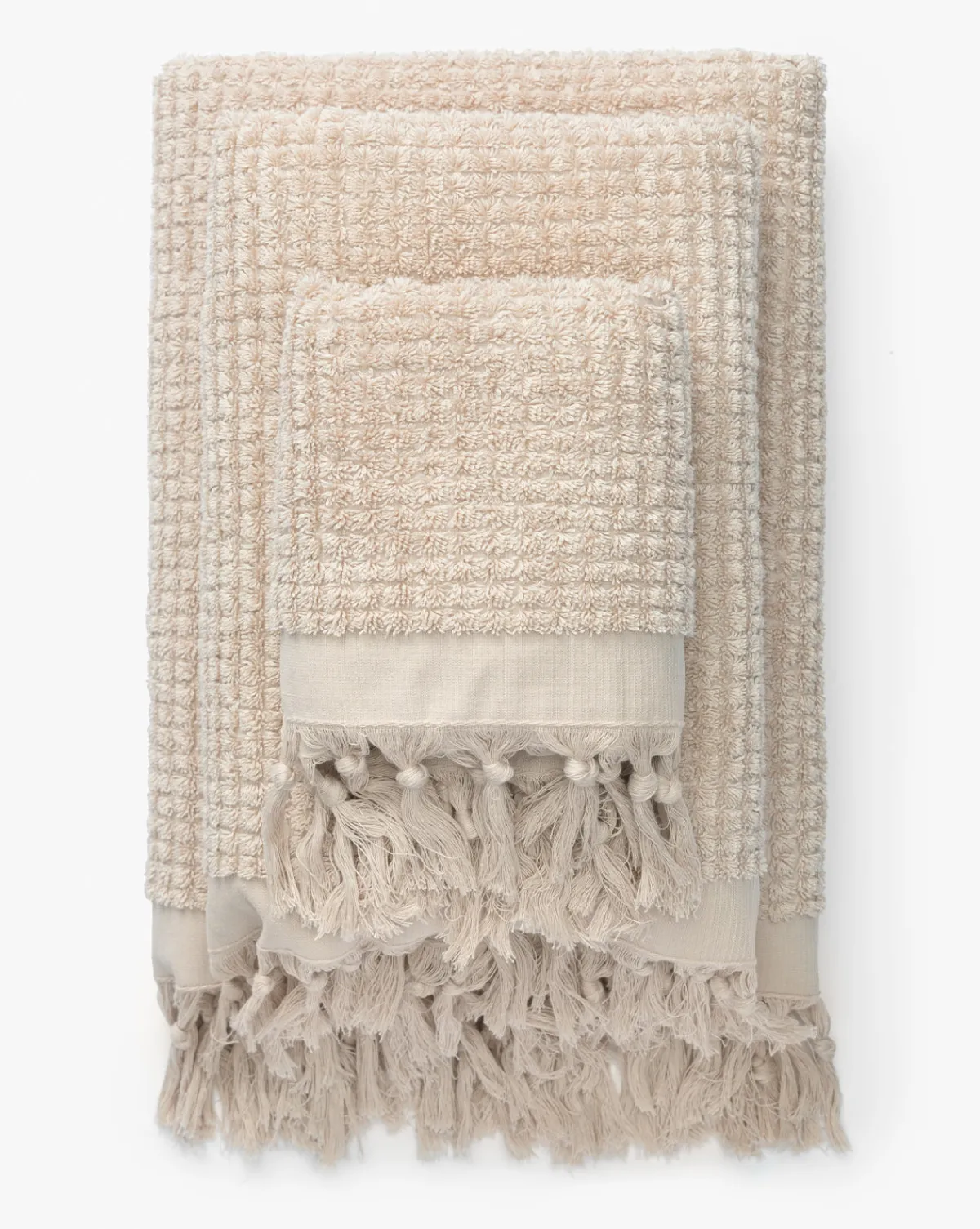 Luxurious and reliable, the Anzio Bath Collection is made from 100% cotton with a waffle weave texture. Its decorative fringe border and neutral tan colorway add a refined layer to your bathroom styling, while its quality material makes each piece an easy staple.
