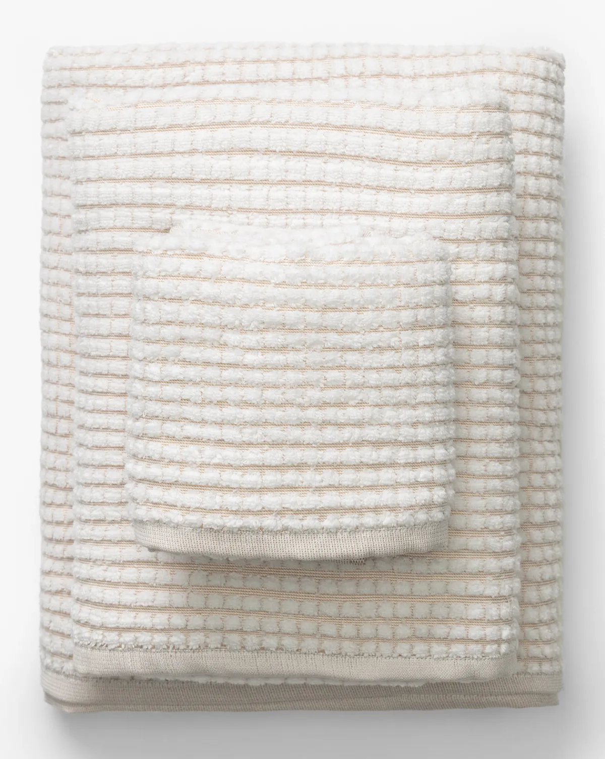 The Atrani Organic Bath Collection brings luxurious softness to your daily routine. Crafted from organic cotton in a soft, neutral hue, each towel features a waffle weave texture for an elevated touch. Lush yet absorbent, it’s designed for comfort, ease, and everyday indulgence.