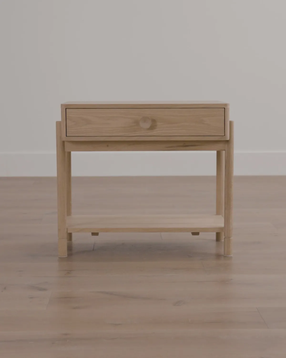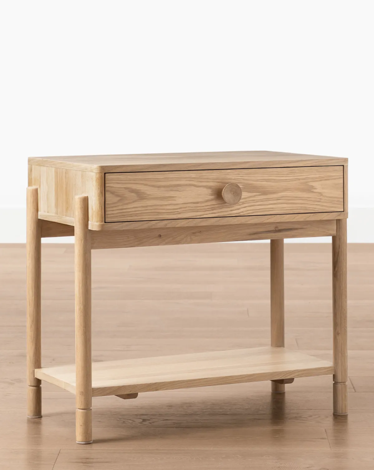 Our Baxter Nightstand brings the elegance and detail of a classic oak nightstand to your home with a transitional design. With oversized round pulls on its drawer and an open lower shelf, details are truly what makes this piece special. Designed with simplicity, enjoy the beauty of oak bedroom furniture with an approachable feel.